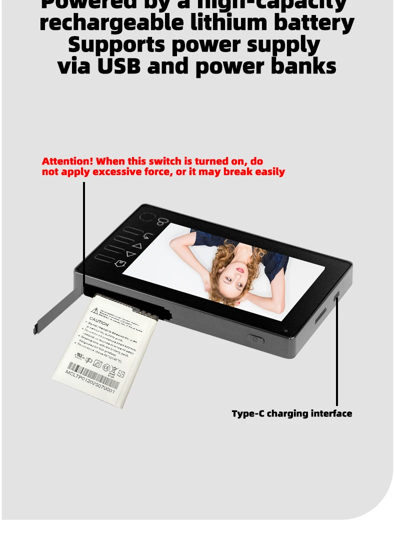 10.This product has two power supply modes. You can use a 1800mAh rechargeable lithium battery or a 5V1A external power supply before testing and using it.