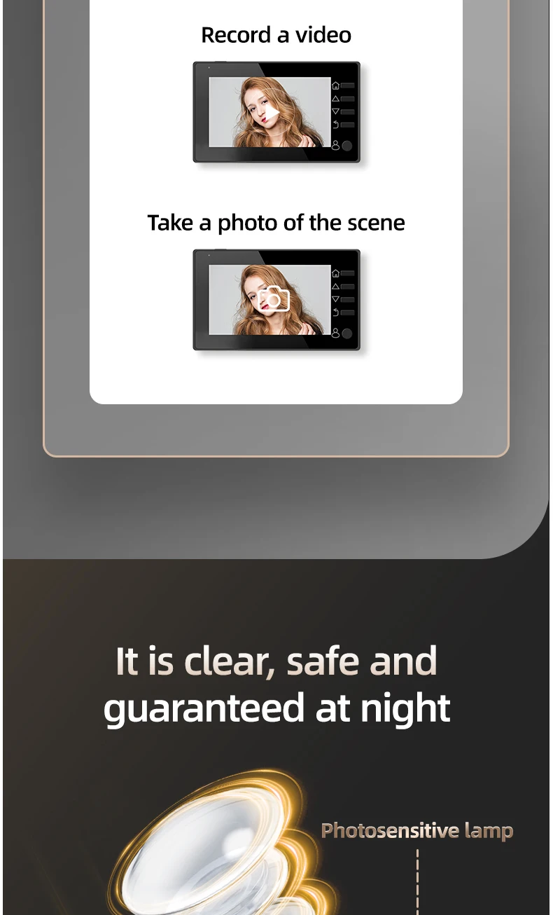 12.This product is a standalone peephole doorbell, and you cannot synchronize the screen to your phone through WiFi connection.