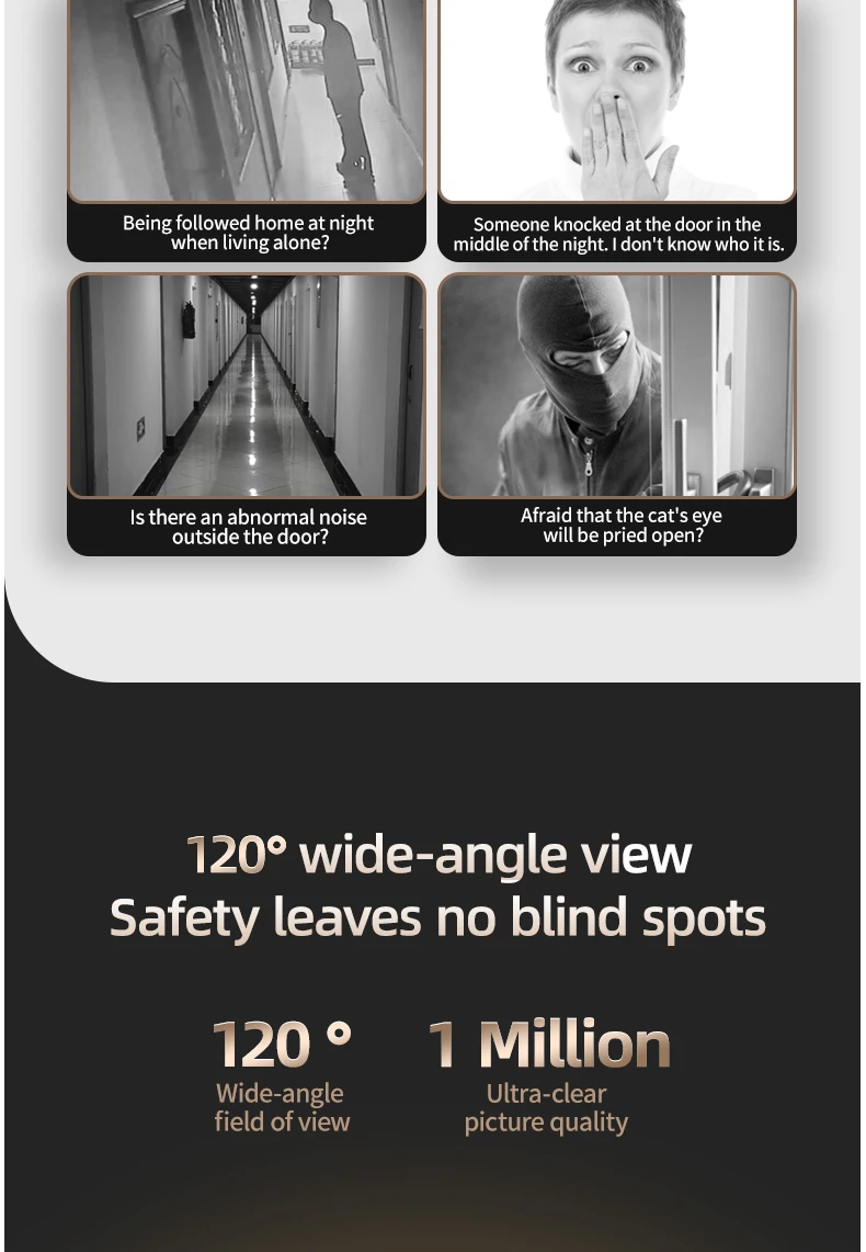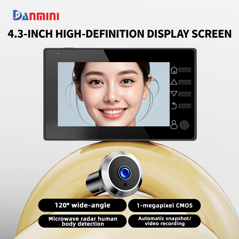 Danmini Visual Doorbell Peephole 4.3” LCD HD Display Digital Door Viewer 1 Million Pixel 120° Camera Security Cat Eye Door Bell