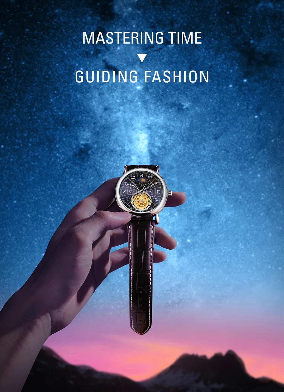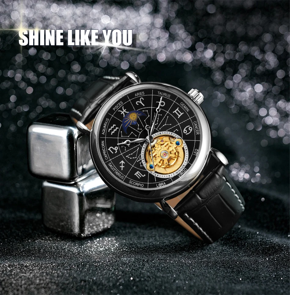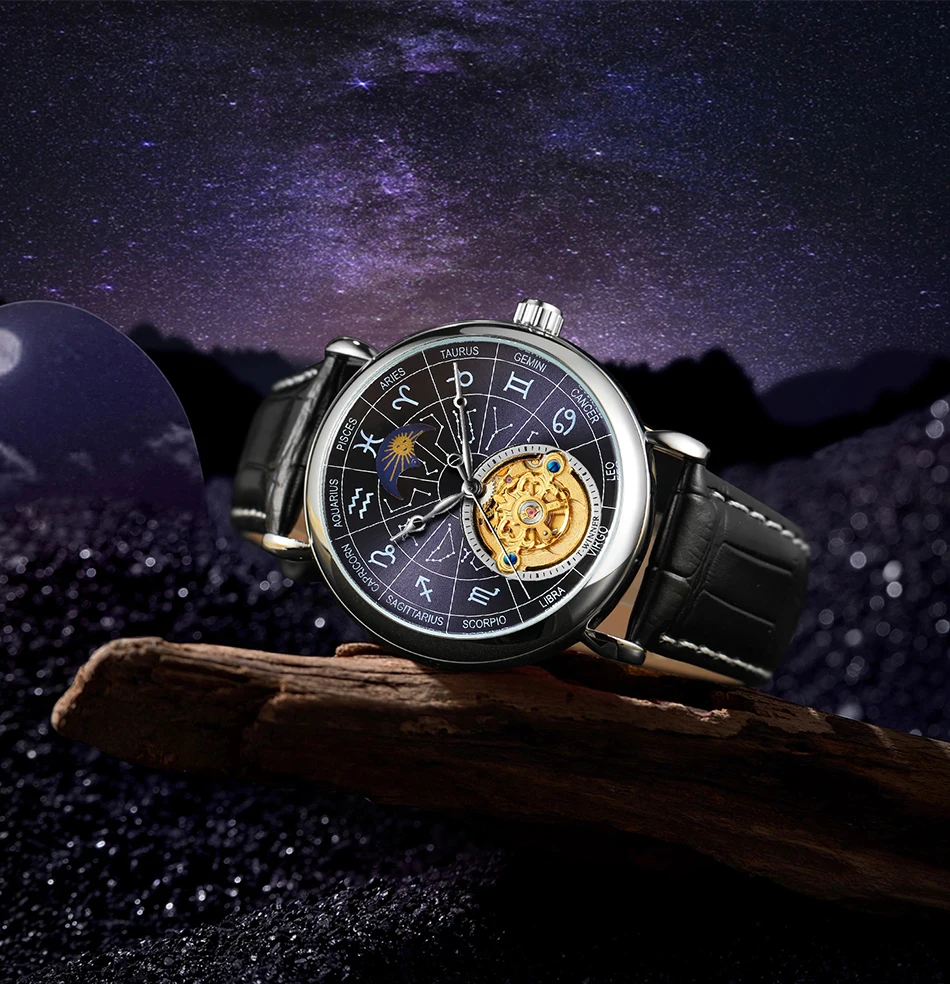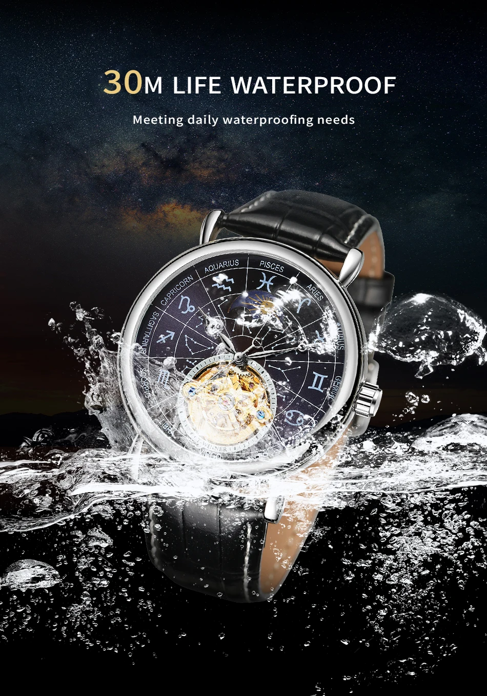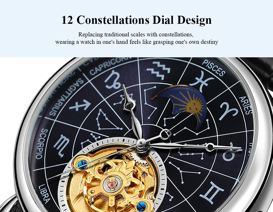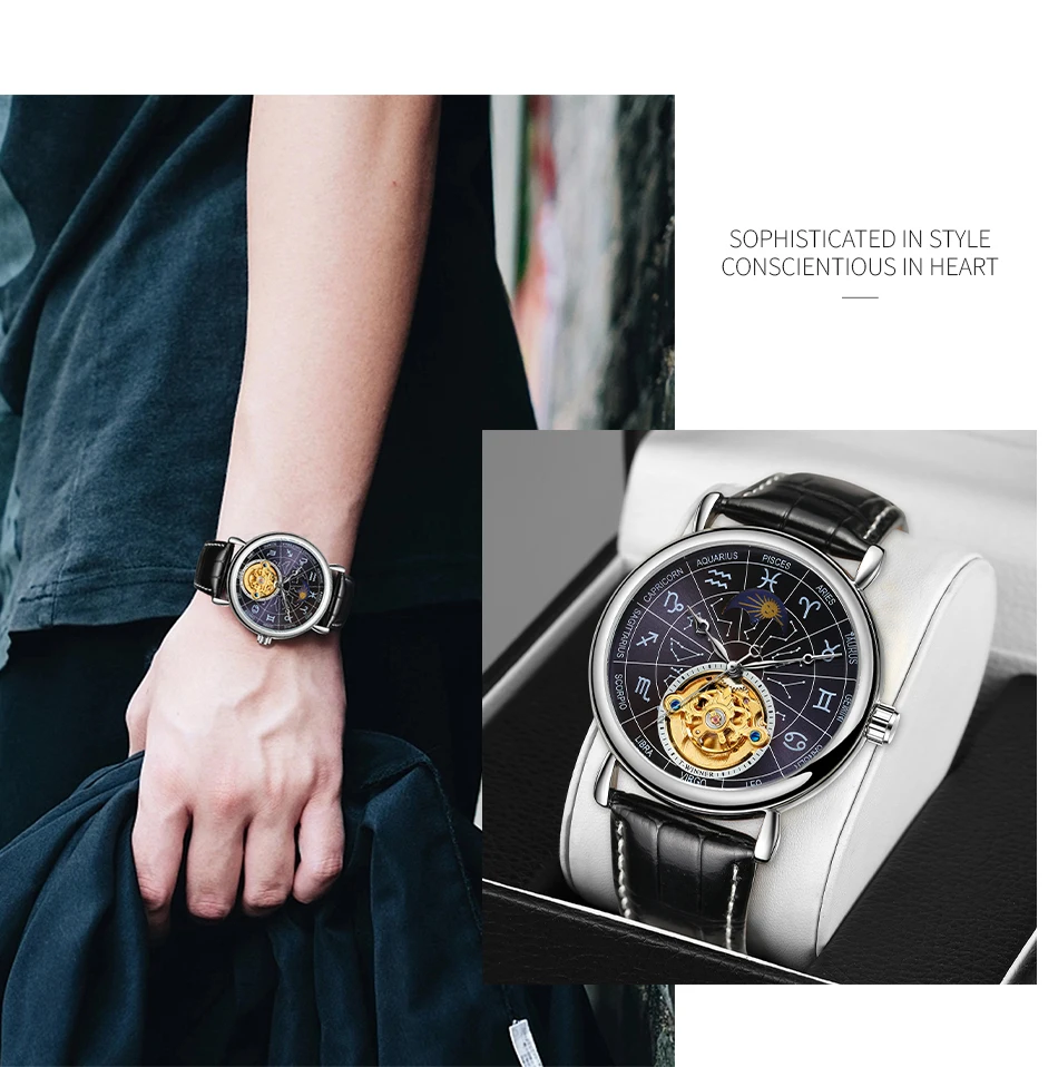 Designer Luxury 12 Constellation Man Watch Moon Phase Tourbillon Automatic Movement Mechanical Clock Waterproof Leather Watches