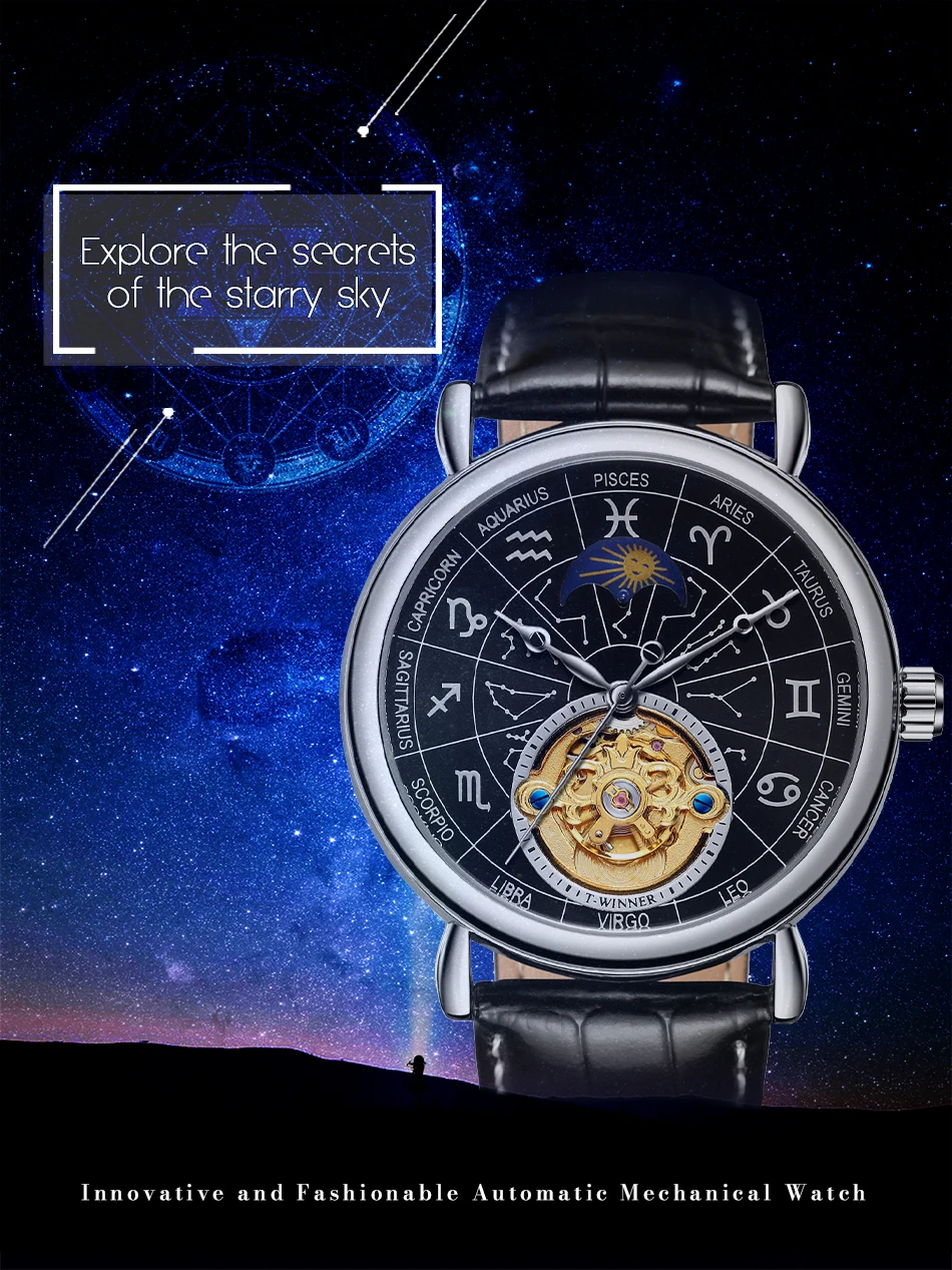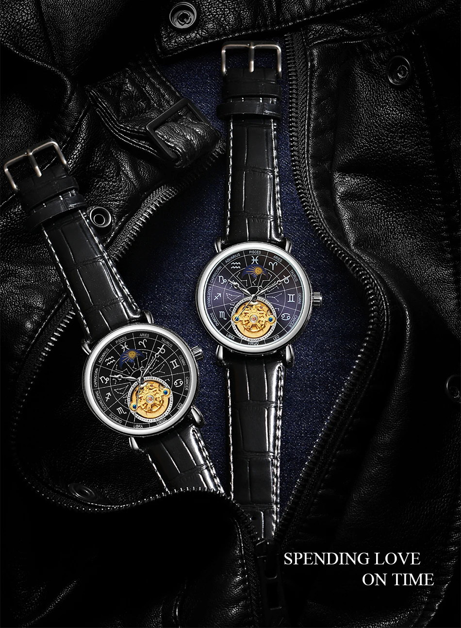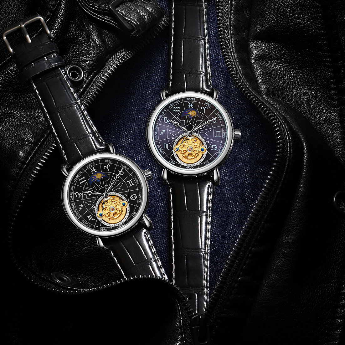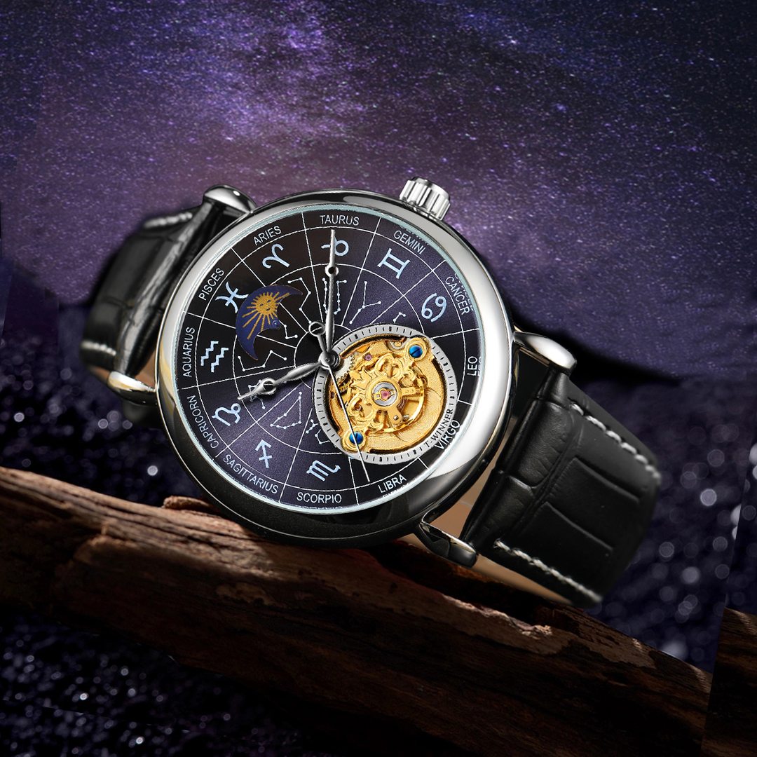 Designer Luxury 12 Constellation Man Watch Moon Phase Tourbillon Automatic Movement Mechanical Clock Waterproof Leather Watches