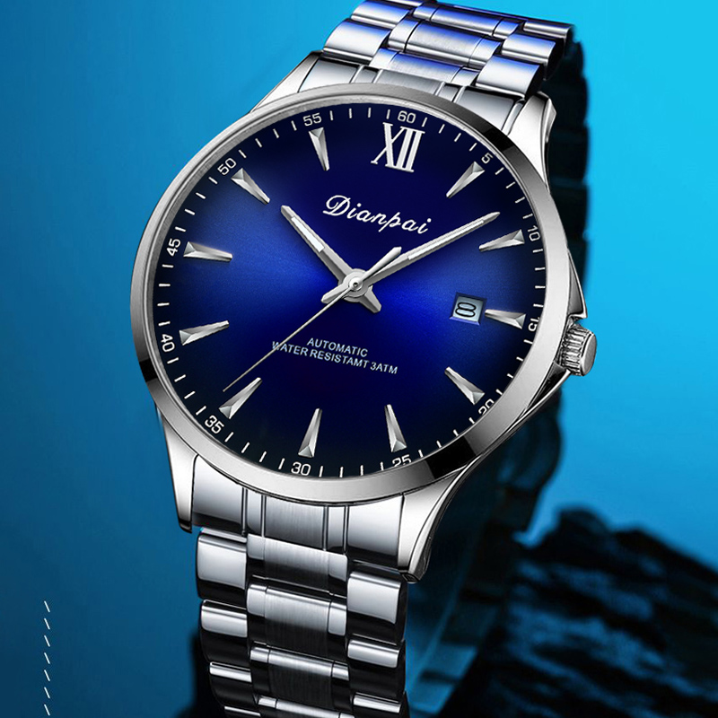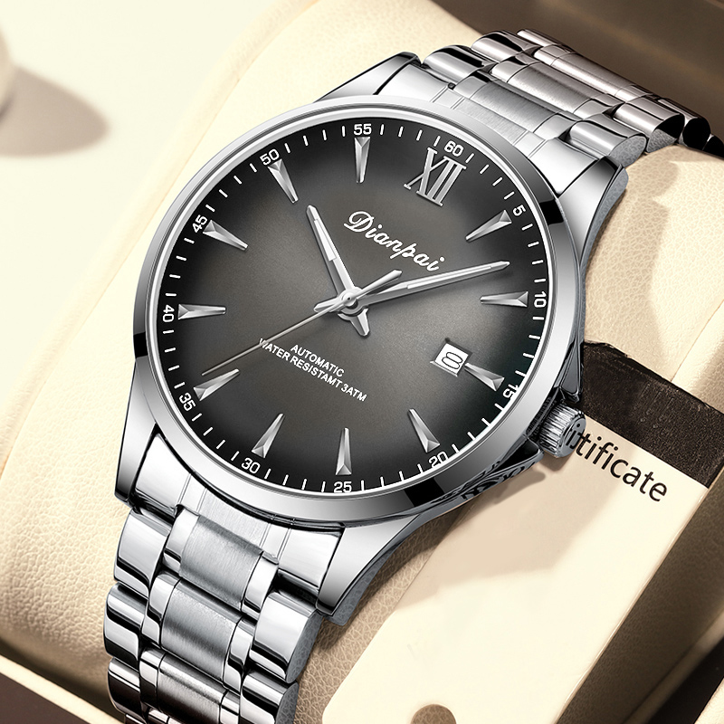 Dianpai Simple Business Men’s Fully Automatic Mechanical Watch Stainless Steel Calendar Men’s Waterproof Night Light Watch