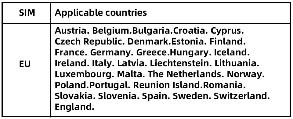 Tip:The following are the frequency bands supported by the device. If you need to purchase a SIM card separately, please ensure that your SIM card supports one of the frequency bands.