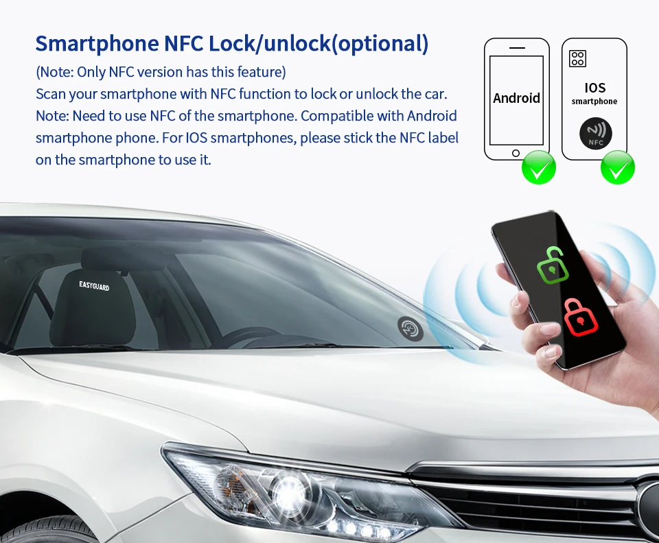 EASYGUARD Smartphone APP car alarm remote starter with proximity access ignition start NFC / touch password lock unlock 4G GPS