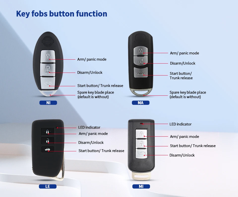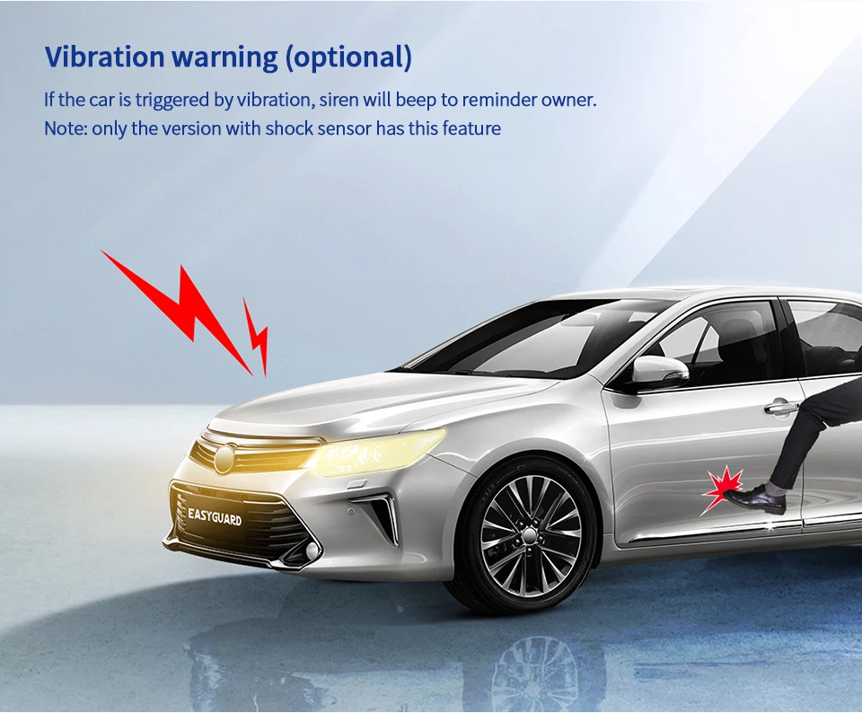 This is EC002-ni series PKE alarm from EASYGUARD with push engine start & remote engine start function.