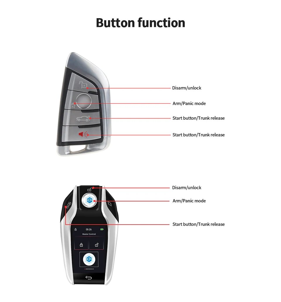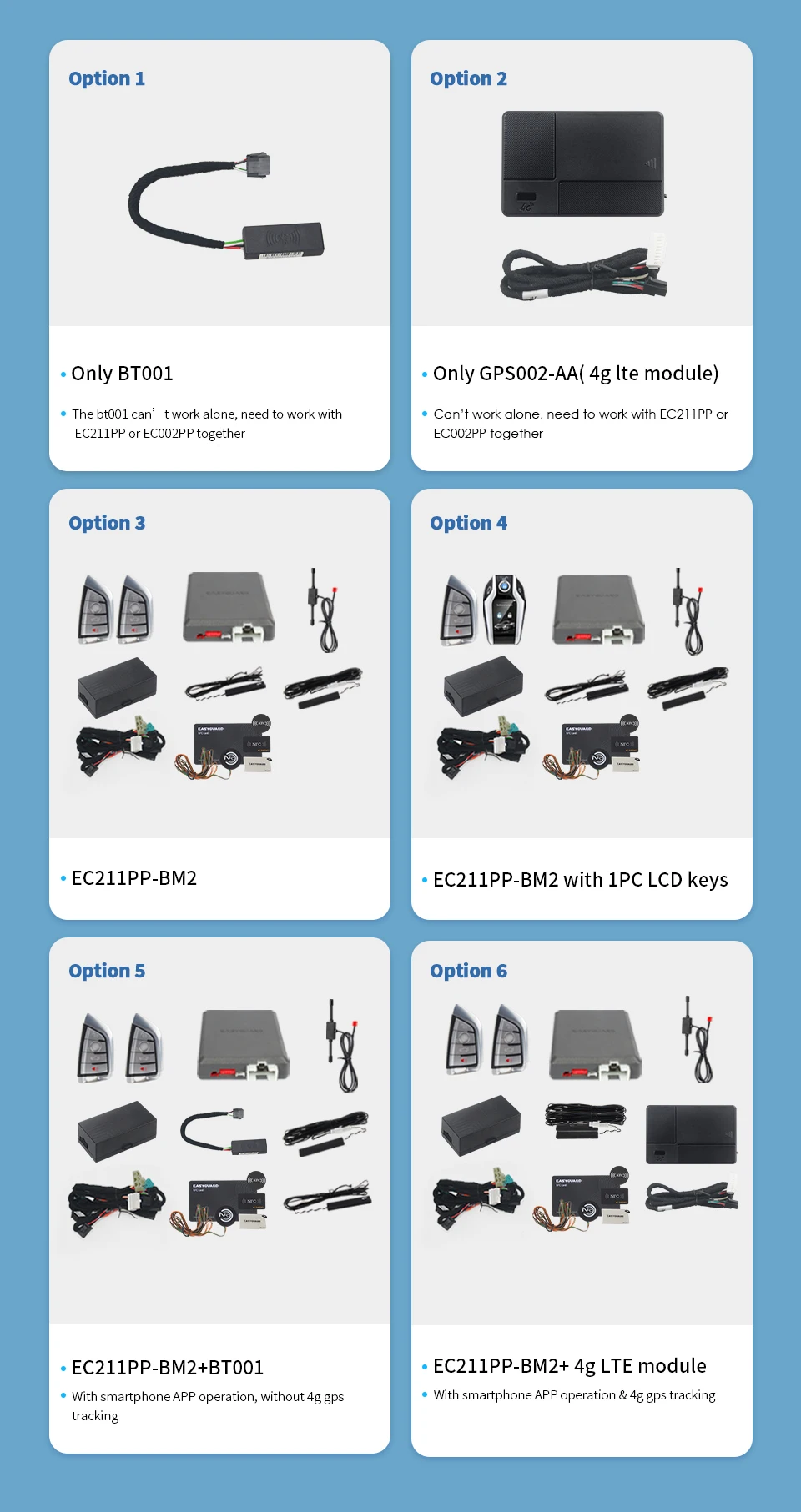 * Upgrade your car with Smartphone App lock unlock (PS: extra BT001 or 4G LTE like GPS002-AA module is required)