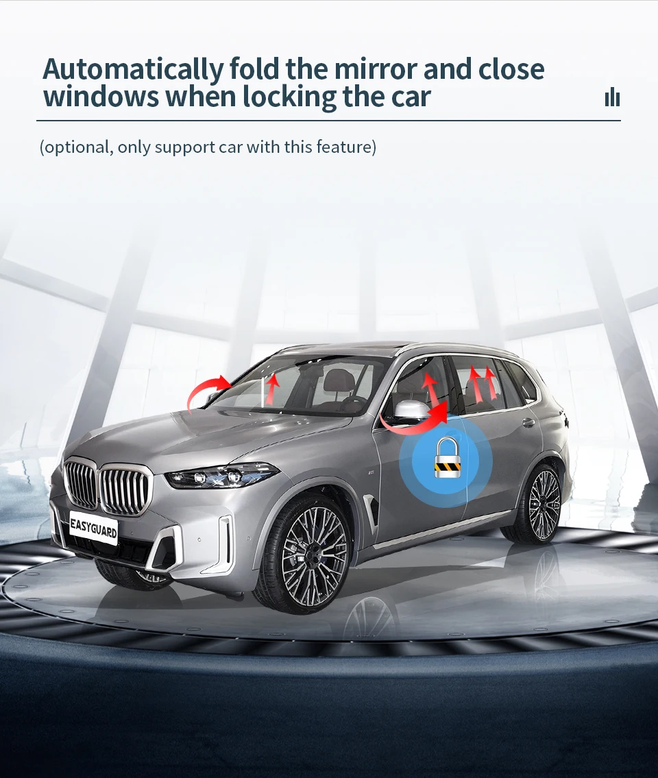 * Automatically fold the mirror and close the window when locking the car (optional, only support the car with this feature)