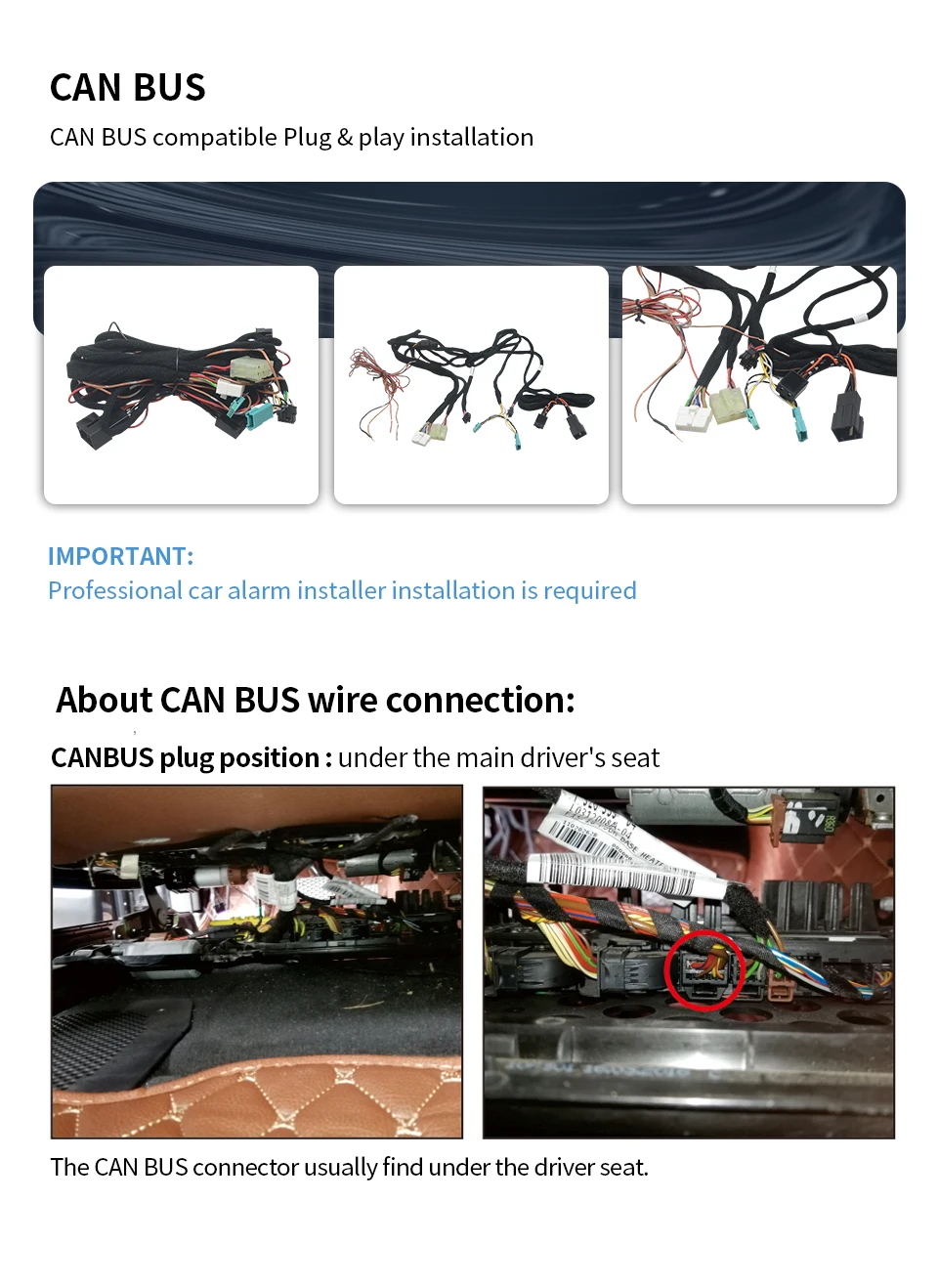 2. Semi Plug & play, and no damage to the original car circuit, CAN BUS compatible with BMW cars only, but still required to be installed by a profession installer, so please find a trained staff to install it before buying, if you need installation guide to check first, please feel free to contact our seller