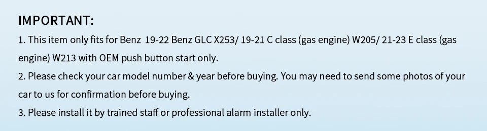 Please read carefully before you place the order to ensure that you buy the correct model for your car.