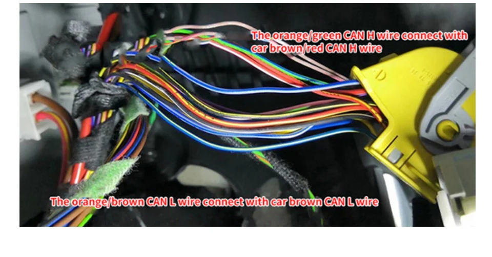 The orange/brown CAN L wire connects with car CAN L brown wire