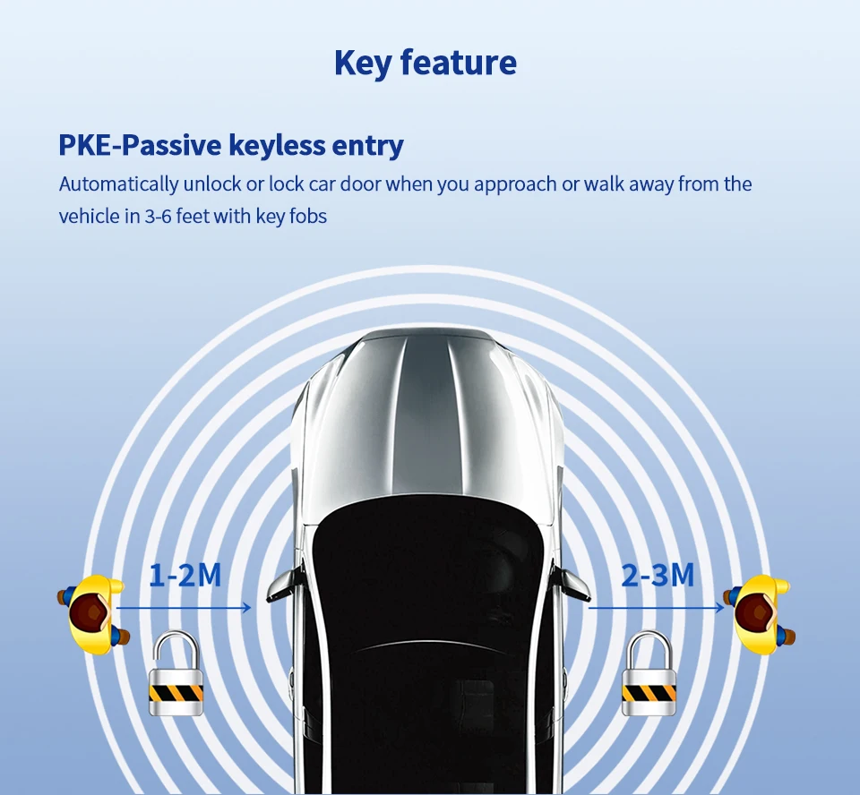 PKE (passive keyless entry), automatically lock or unlock the car when approach or leave the car in 1-2 meters
