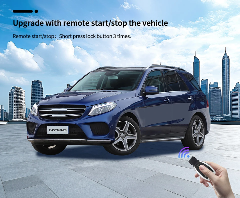 Upgrade with remote start/stop the vehicle ( Remote start/stop: Short press lock button 3 times.)