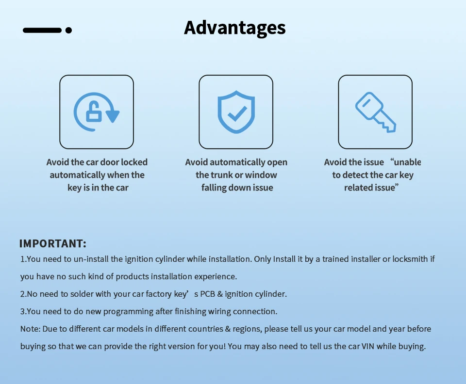 ⚡ No soldering of factory key PCB or ignition cylinder