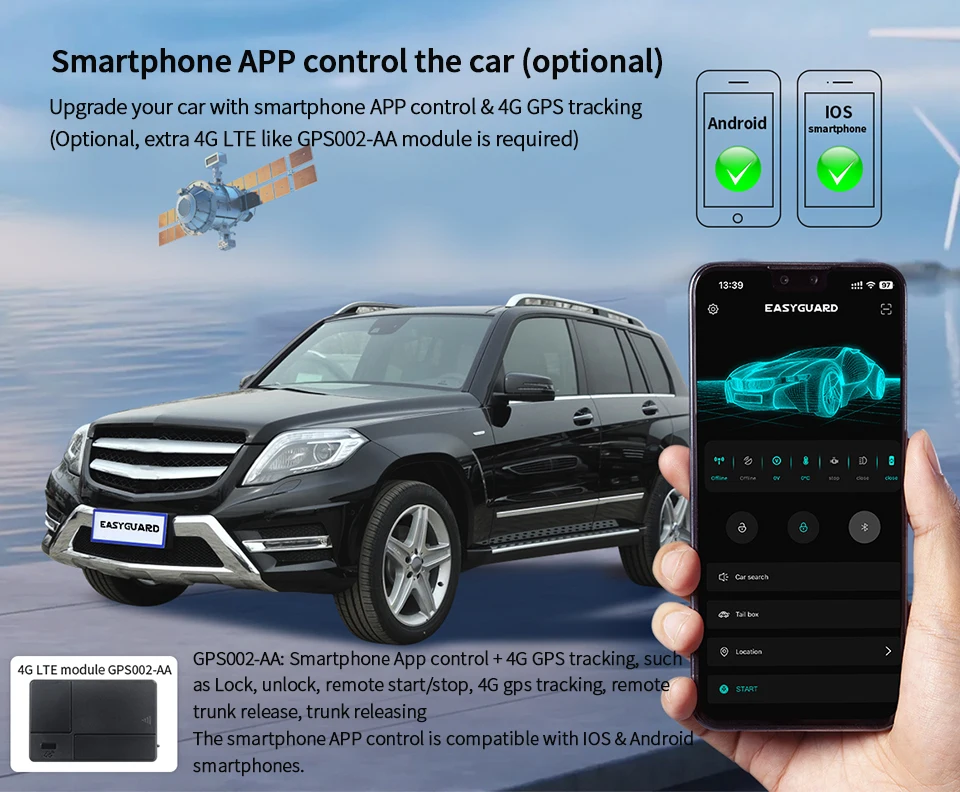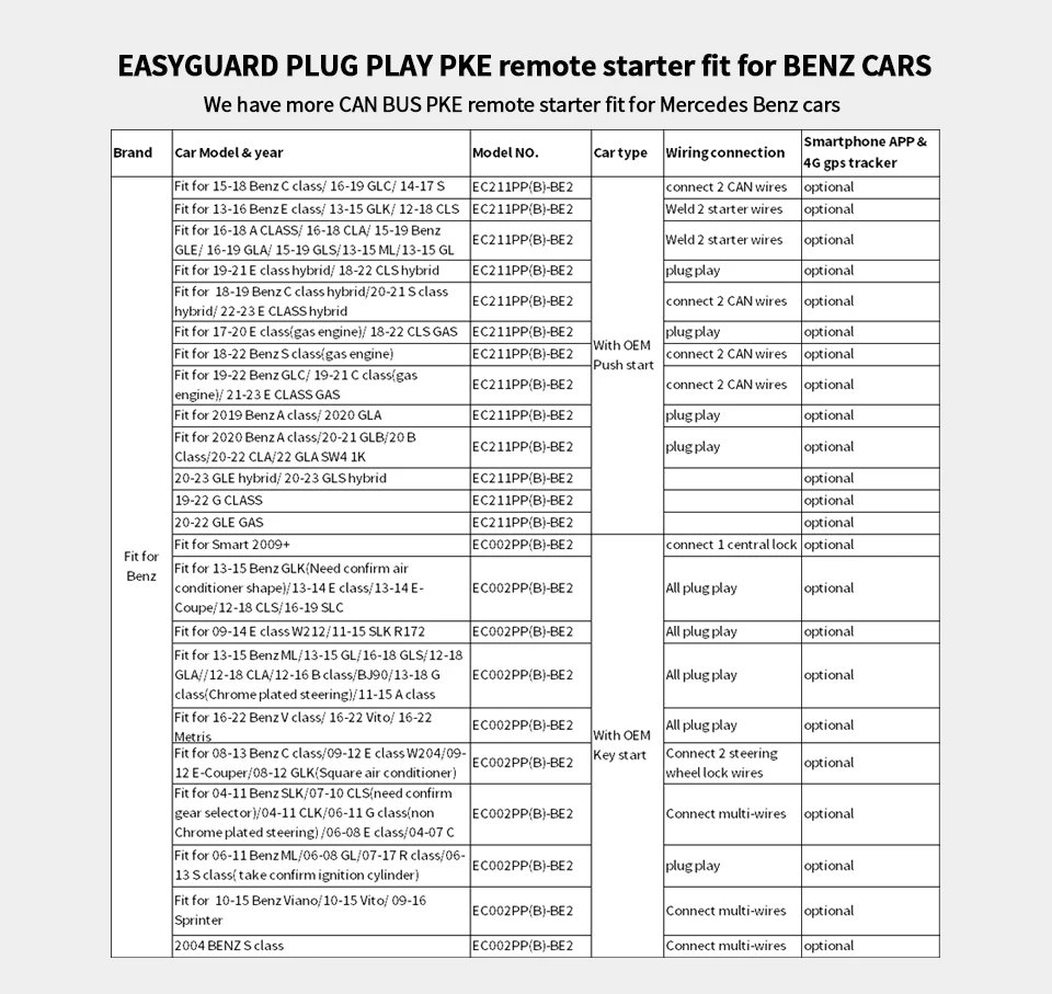 EASYGUARD Plug & Play PKE remote starter for benz 13-15 Benz GLK X204/13-14 E W212/E-Coupe W212/12-18 CLS X166/16-19 SLC R172