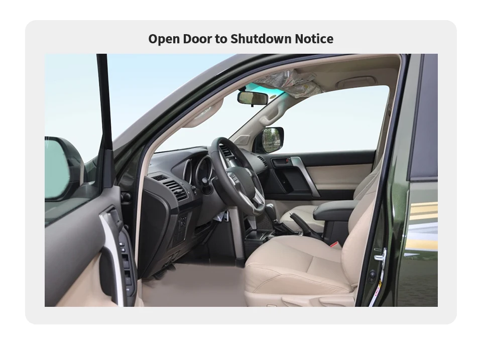 Open Door to Shut down: After Remote Start the car, when you open the driver door, the car Engine Will Shut Down for Safety consideration.