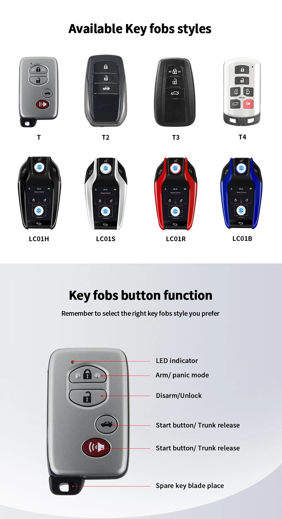 This item can only fit for Highlander 2009-2014/Highlander 2015-2017/Highlander 2018-2019/Camry 6th 2006-2014/Camry 7th 2015-2017/Camry 8th 2018-2023/Levin 2014-2017/Levin 2018/Levin 2019-2023/E’Z 2010-2016 original car is key to start.