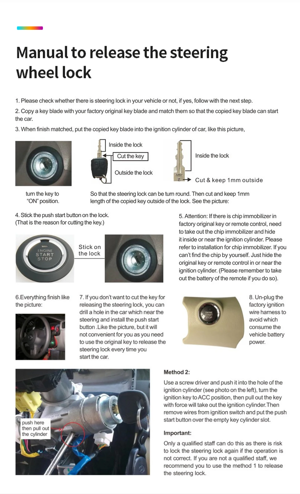5.You still need to unlock/release/remove the steering wheel lock during the installation.