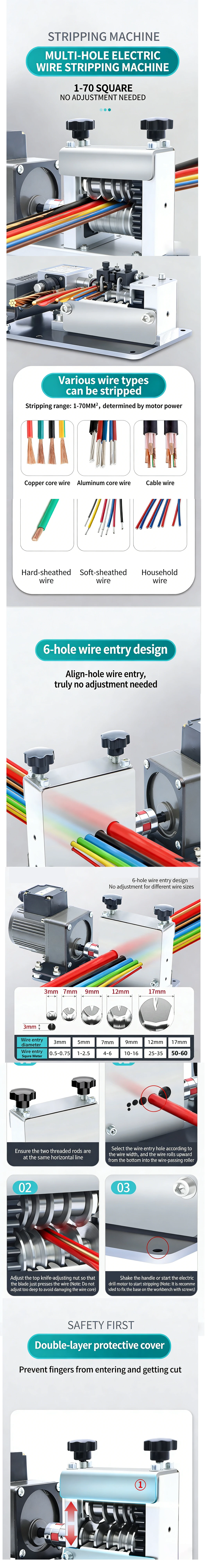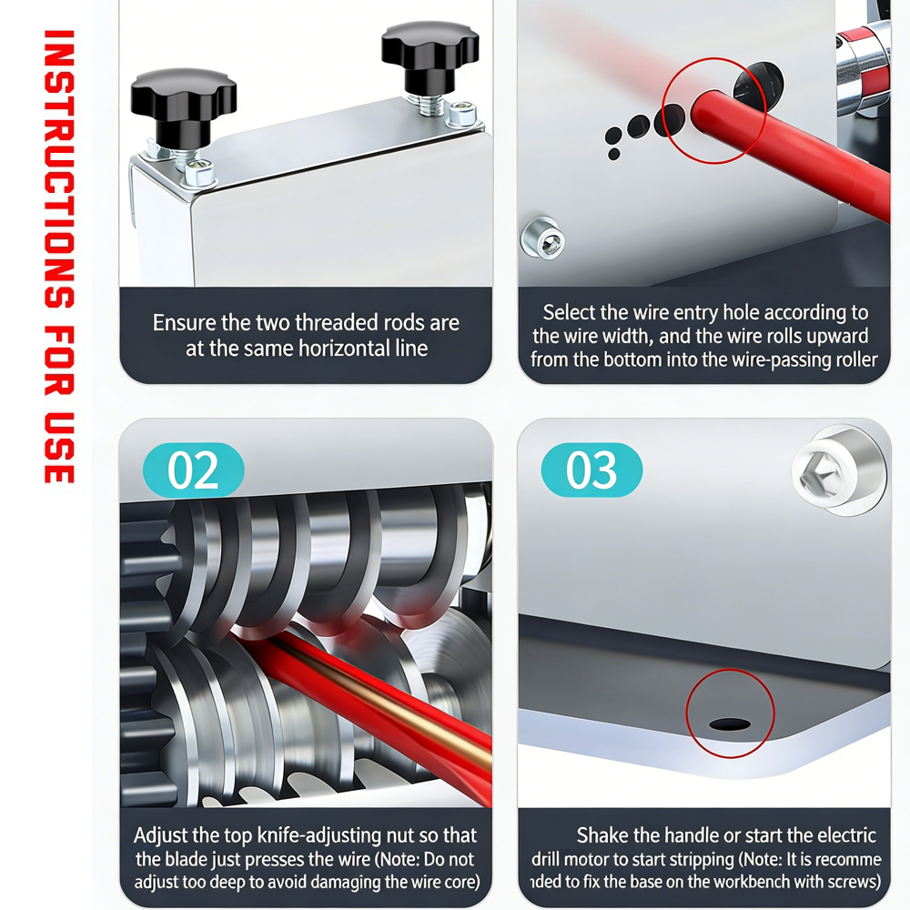 Tired of time-consuming manual wire stripping? Our electric wire stripping machine delivers unmatched efficiency, effortlessly handling wires from 0.5mm² to 70mm². Equipped with a powerful motor and precision-machined rollers, it strips insulation cleanly and quickly without damaging the copper core—saving you hours of labor on every job.