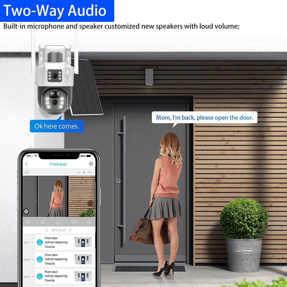 This solar camera can clearly see more zoom details with a UHD picture, bringing you a better visual experience that is unsurpassed by other products in the market. Realize to see bigger details of distant objects without getting close.