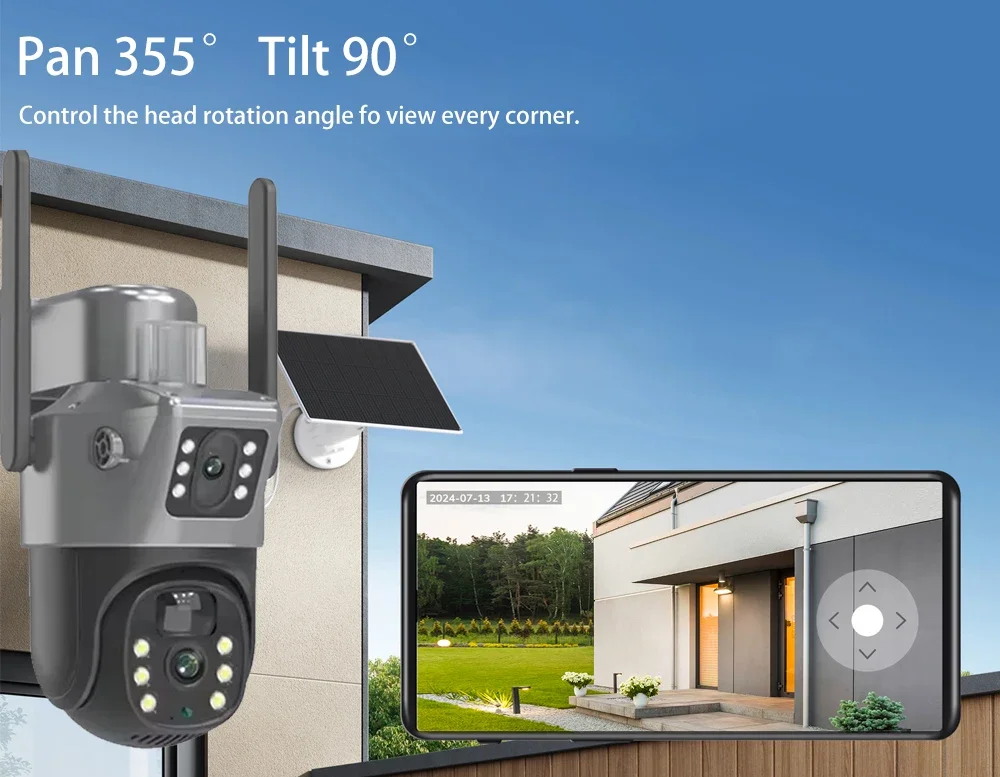 This solar camera can clearly see more zoom details with a UHD picture, bringing you a better visual experience that is unsurpassed by other products in the market. Realize to see bigger details of distant objects without getting close.
