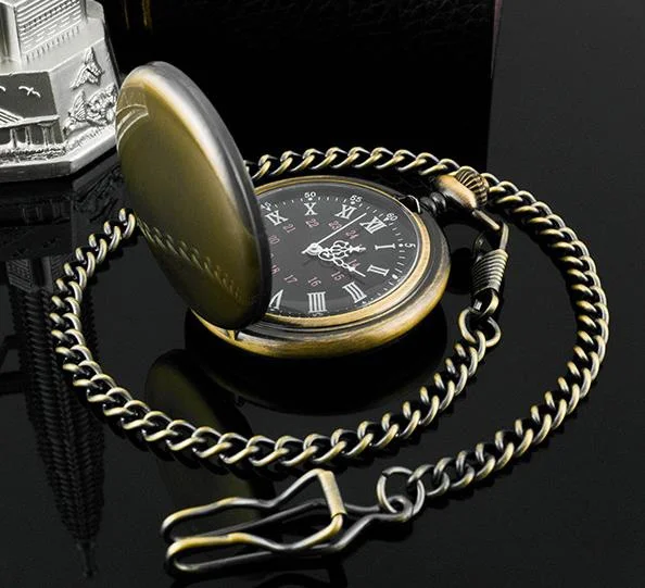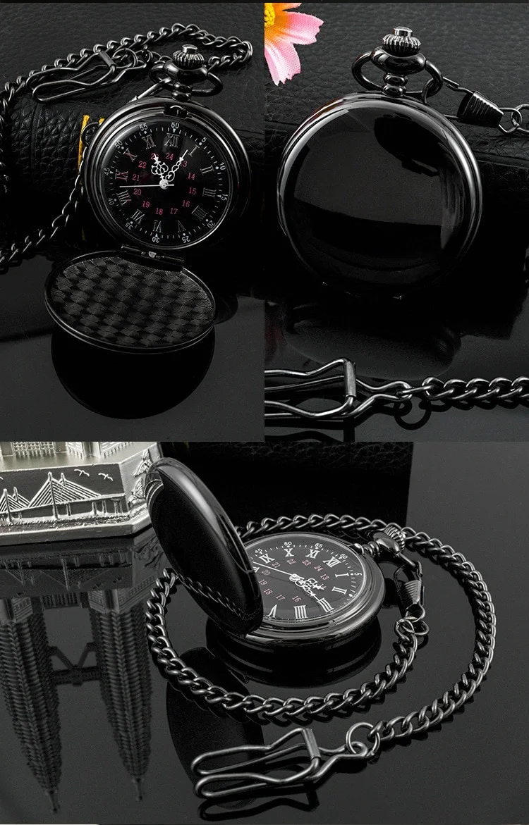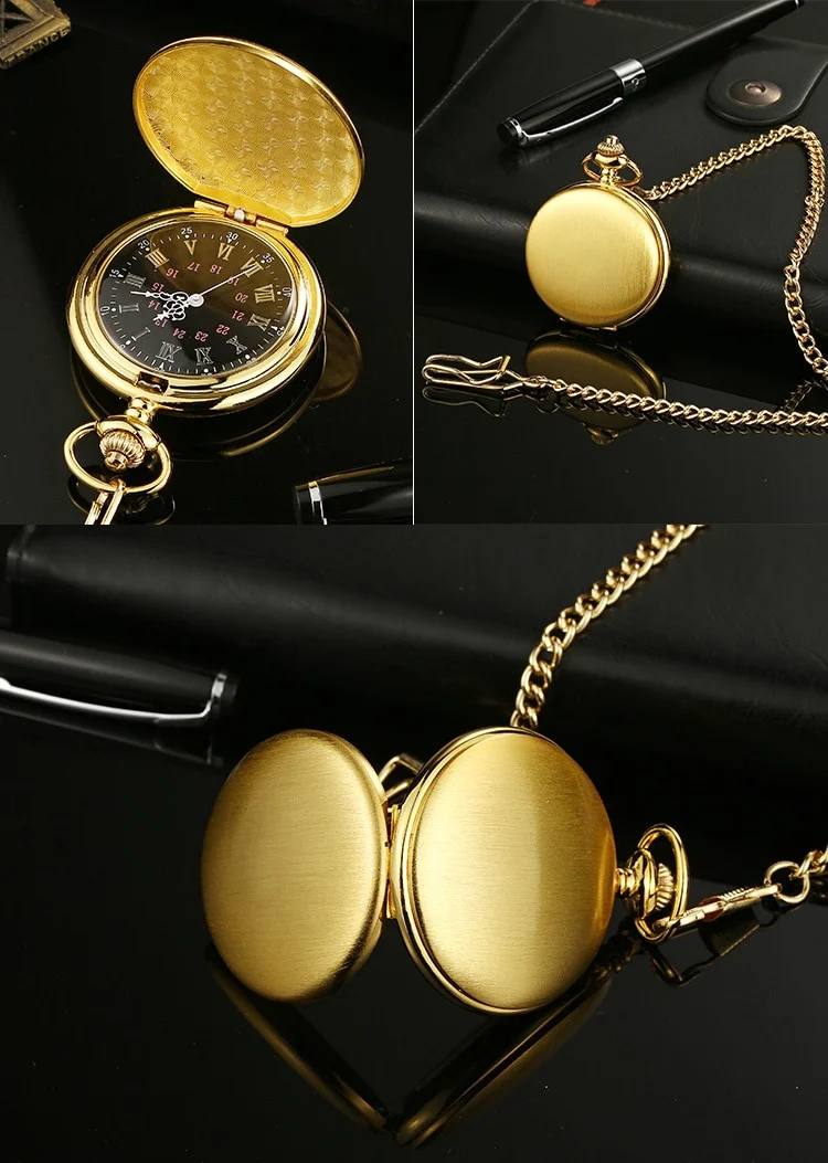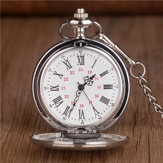 Fashion 37CM Fob Chain Smooth Steel Quartz Pocket Watch Vintage Roman Nmber Dial Pendant Fob Watch Gifts Clock