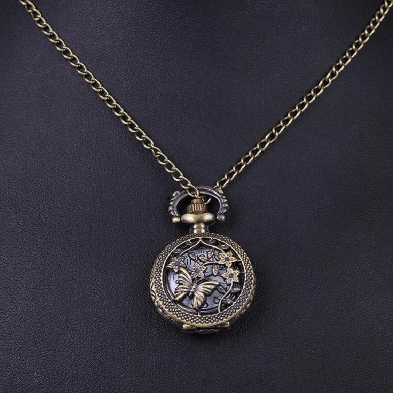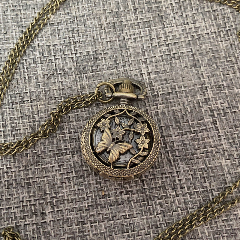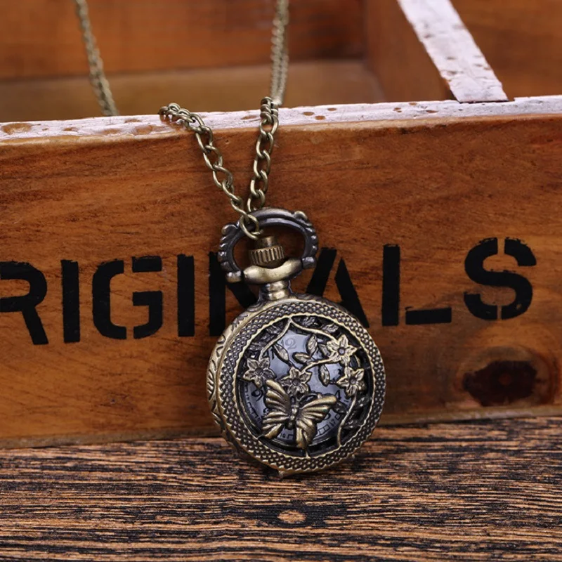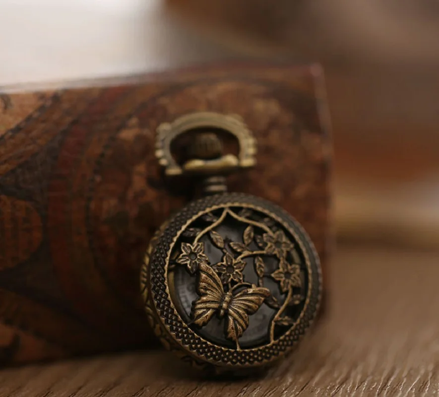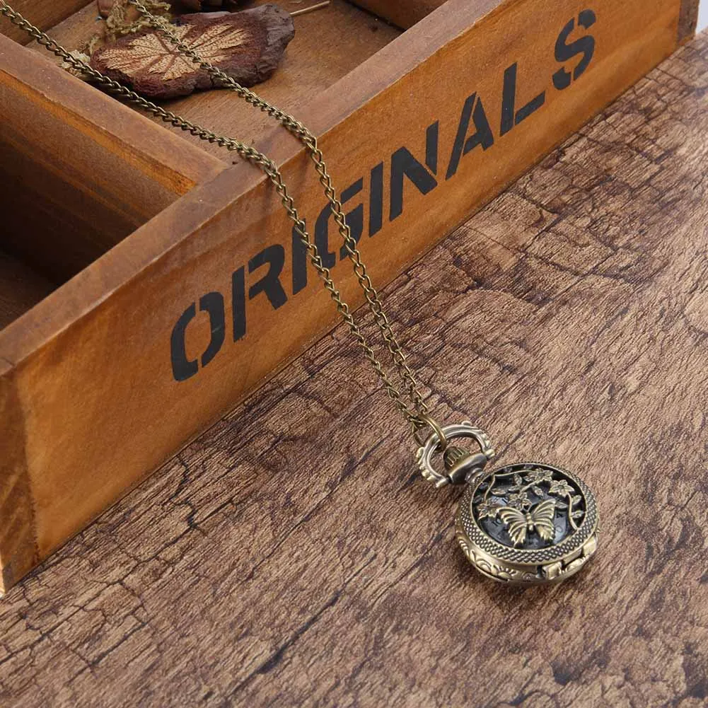 1 Pcs Fashion Cute Vintage Hollow Butterfly Vine Flower Pocket Watch Bronze Color Quartz Watch Cool Chain Quartz Watches Gifts