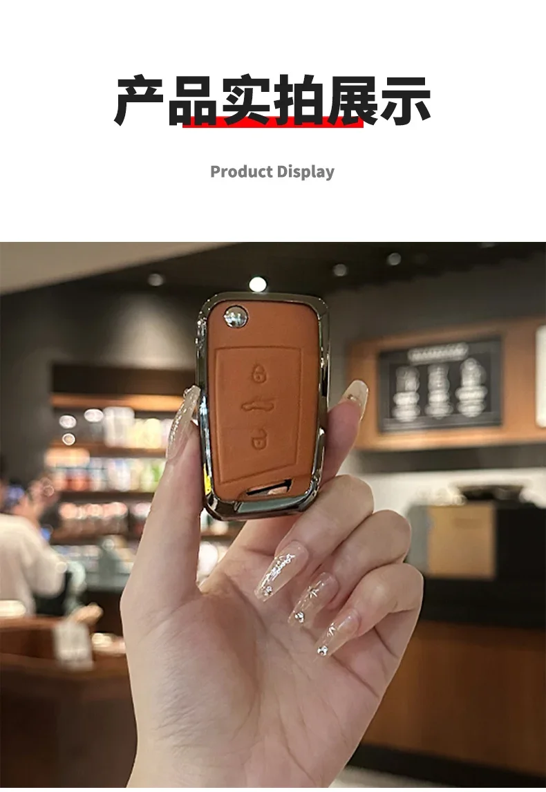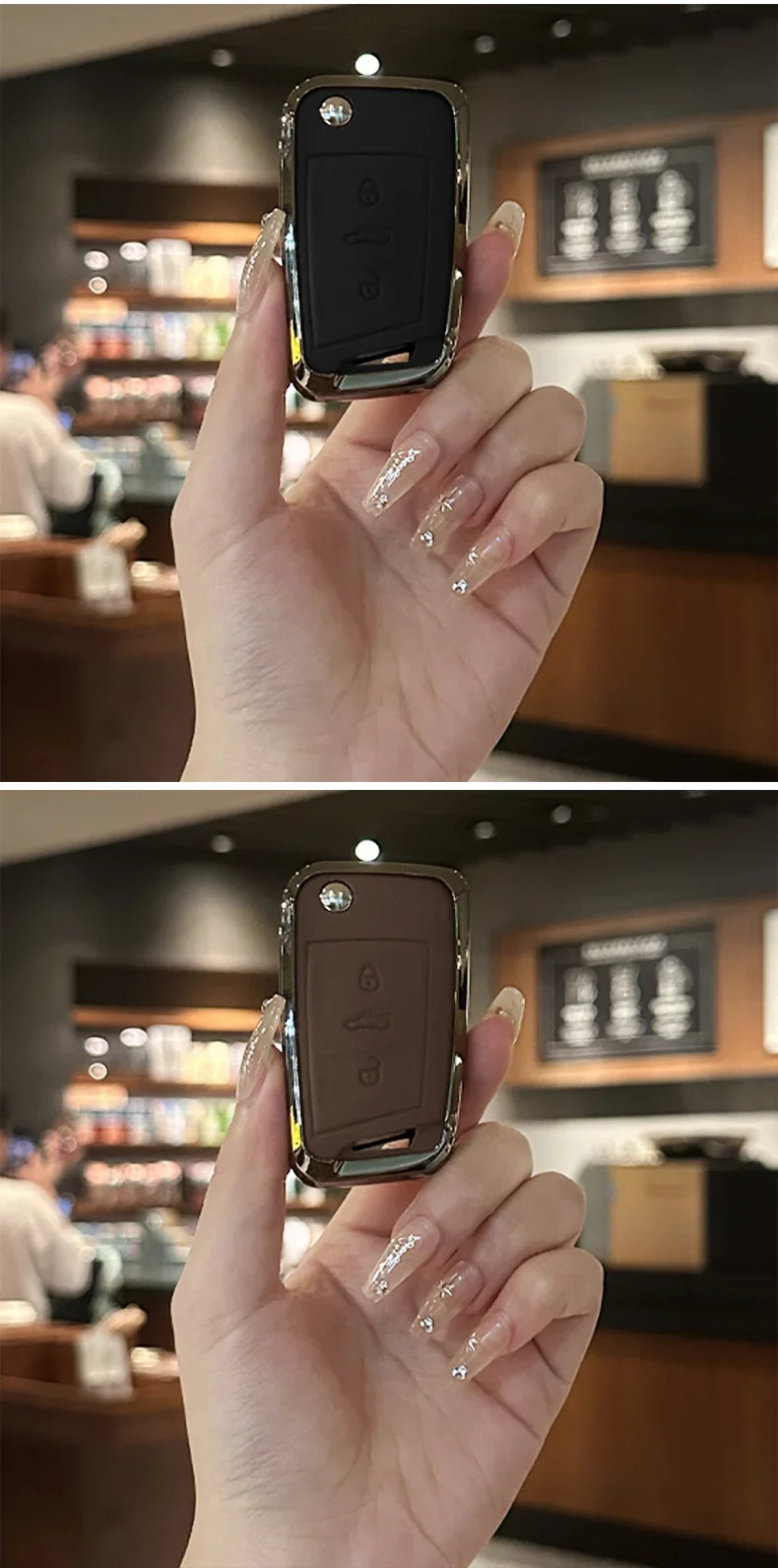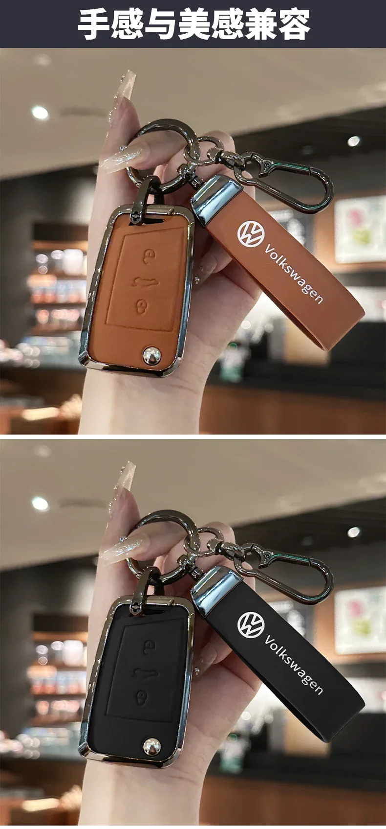 For VW Volkswagen Tiguan MK2 Golf 7 MK7 T-Cross T-ROC Polo Touran Zinc Alloy Car Key Case Cover Shell Protect Chain Accessories