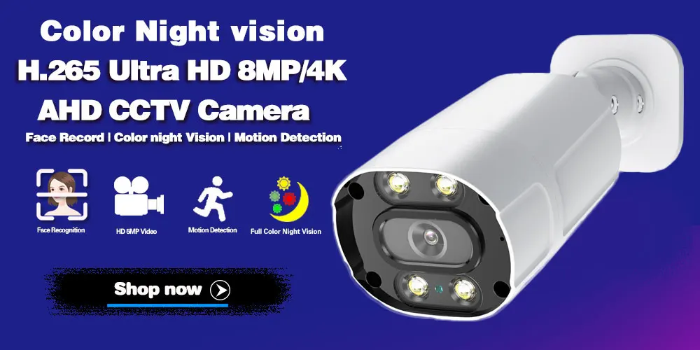 Full Color Night Vision 4K AHD Security Surveillance Camera Outdoor Waterproof Face Detection 5MP CCTV Analog Bullet Camera 8MP