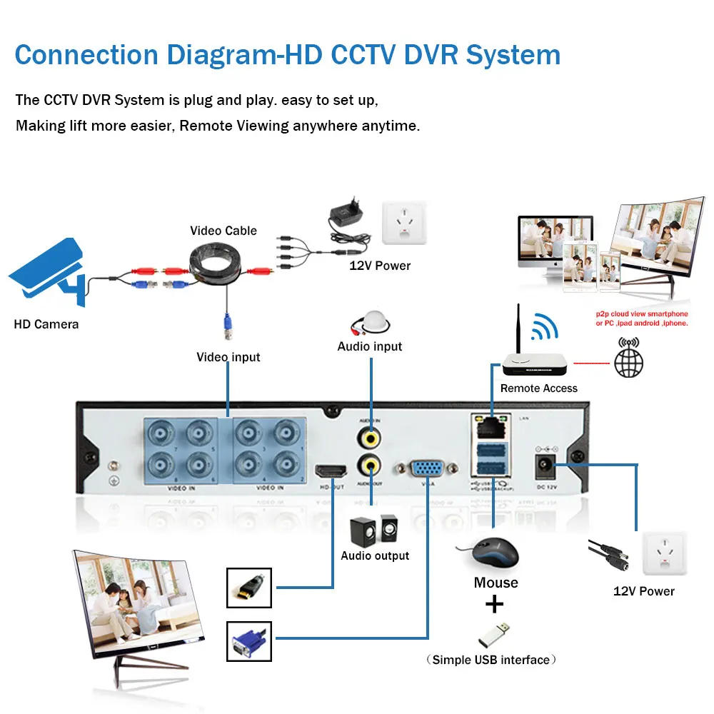 The cctv camera security system is plug and play ,easy to set up,Making lift more easier.Remote viewing anywhere anytime.