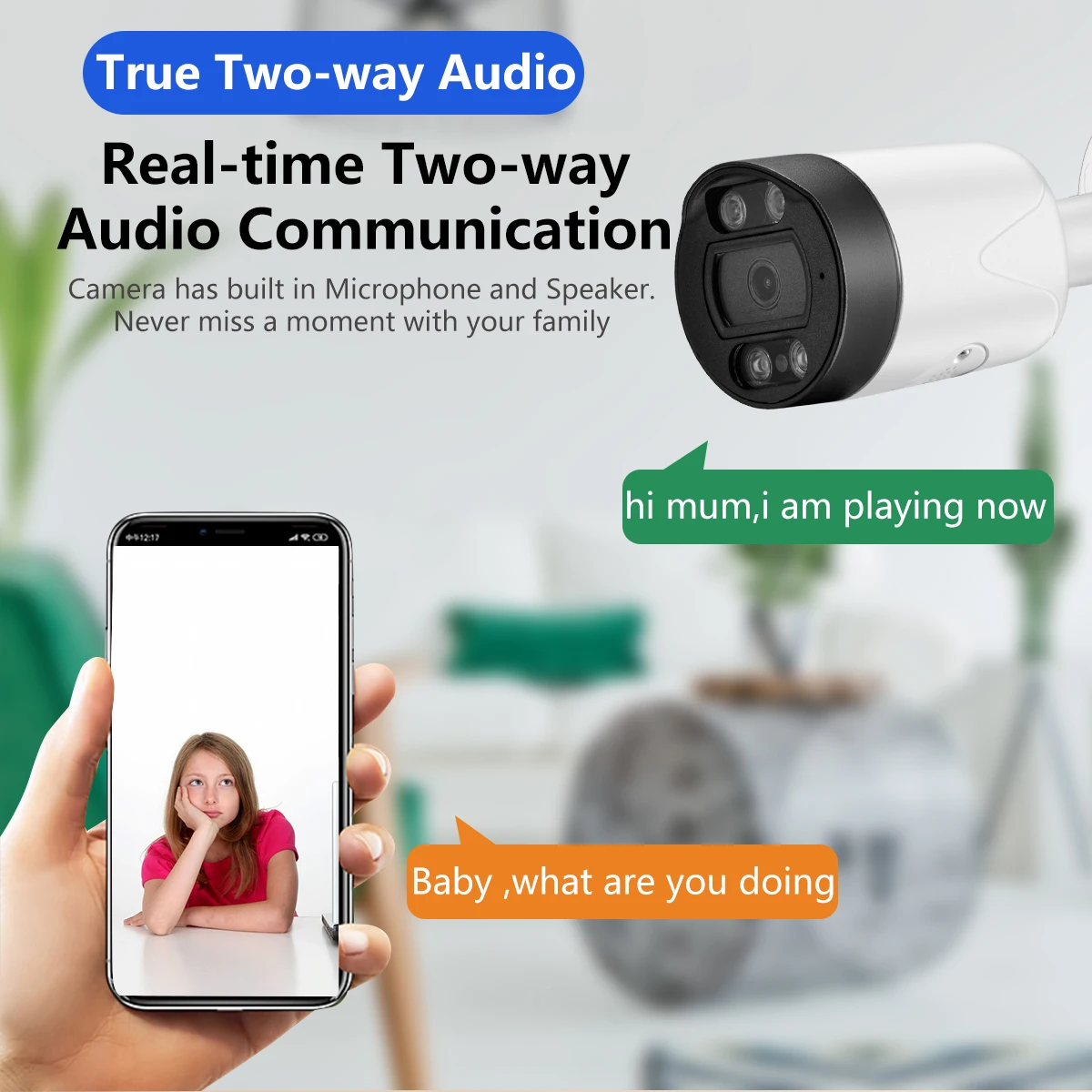 Audio:Bulit in Microphone and Speaker. Support Audio Recording and Two way audio