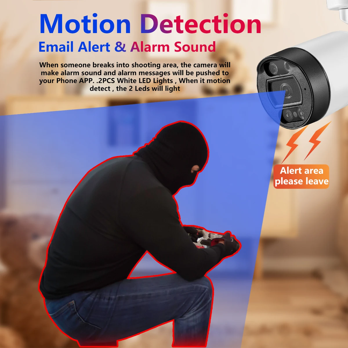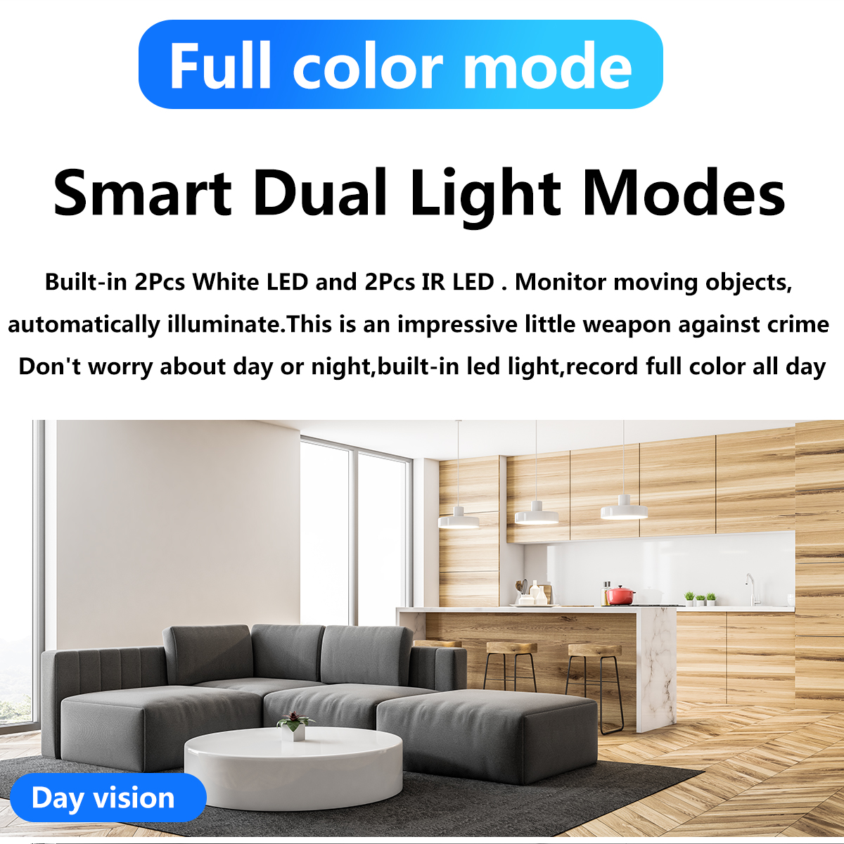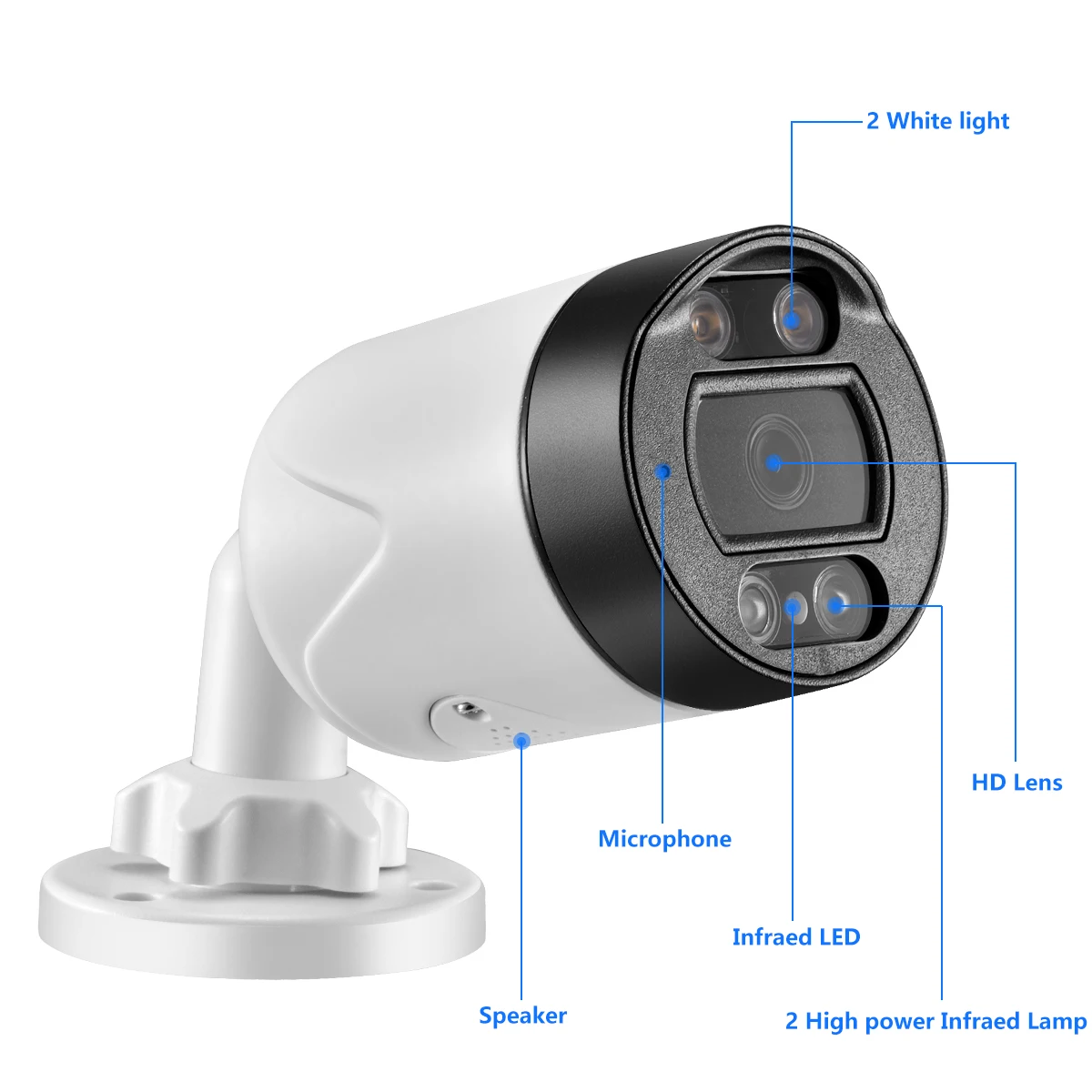 Number of IR LEDs:Support Day/Night, 2 White Lights + 2 Infrared Lights FULL color 10~30M IR distance