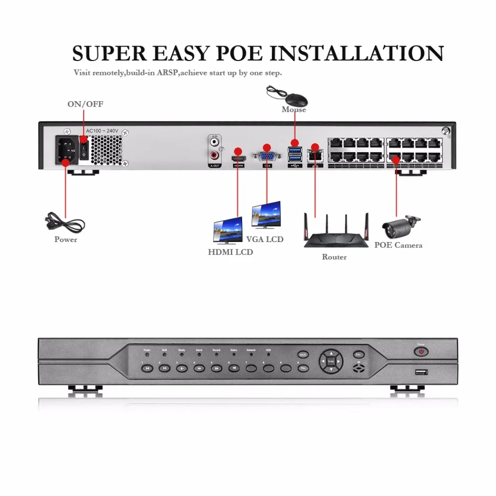 Remote view with free APP on Your Smart Phone(Android and iOS System) and Computer(Windows System) .H.265+ POE NVR Specification: