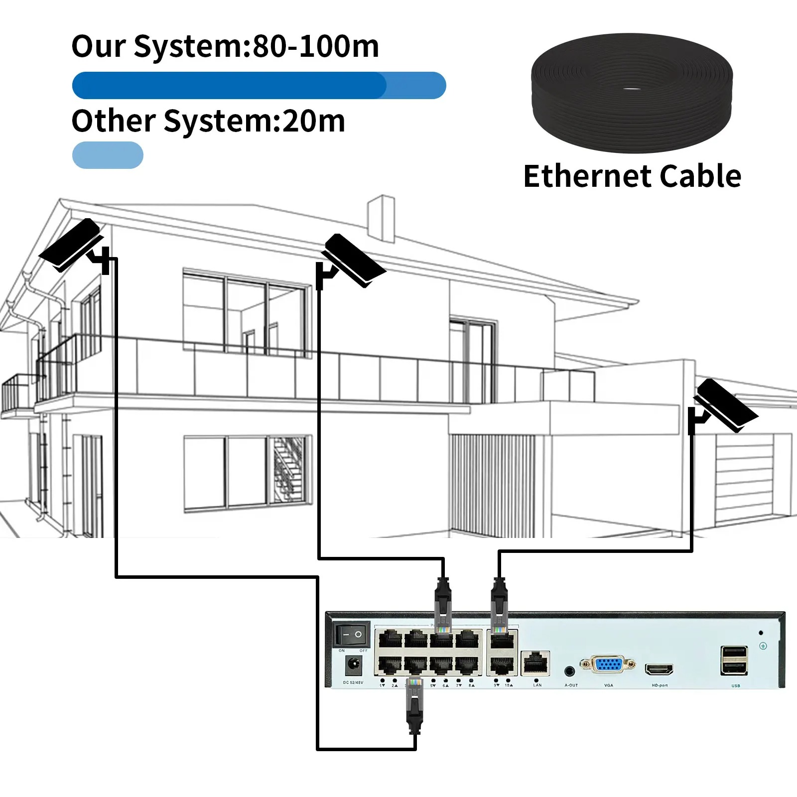 When detect motion,the camera can push alarm message to APP or send photo to your email.Then you can check the details timely.POE Advantage, Why Choose POE ?