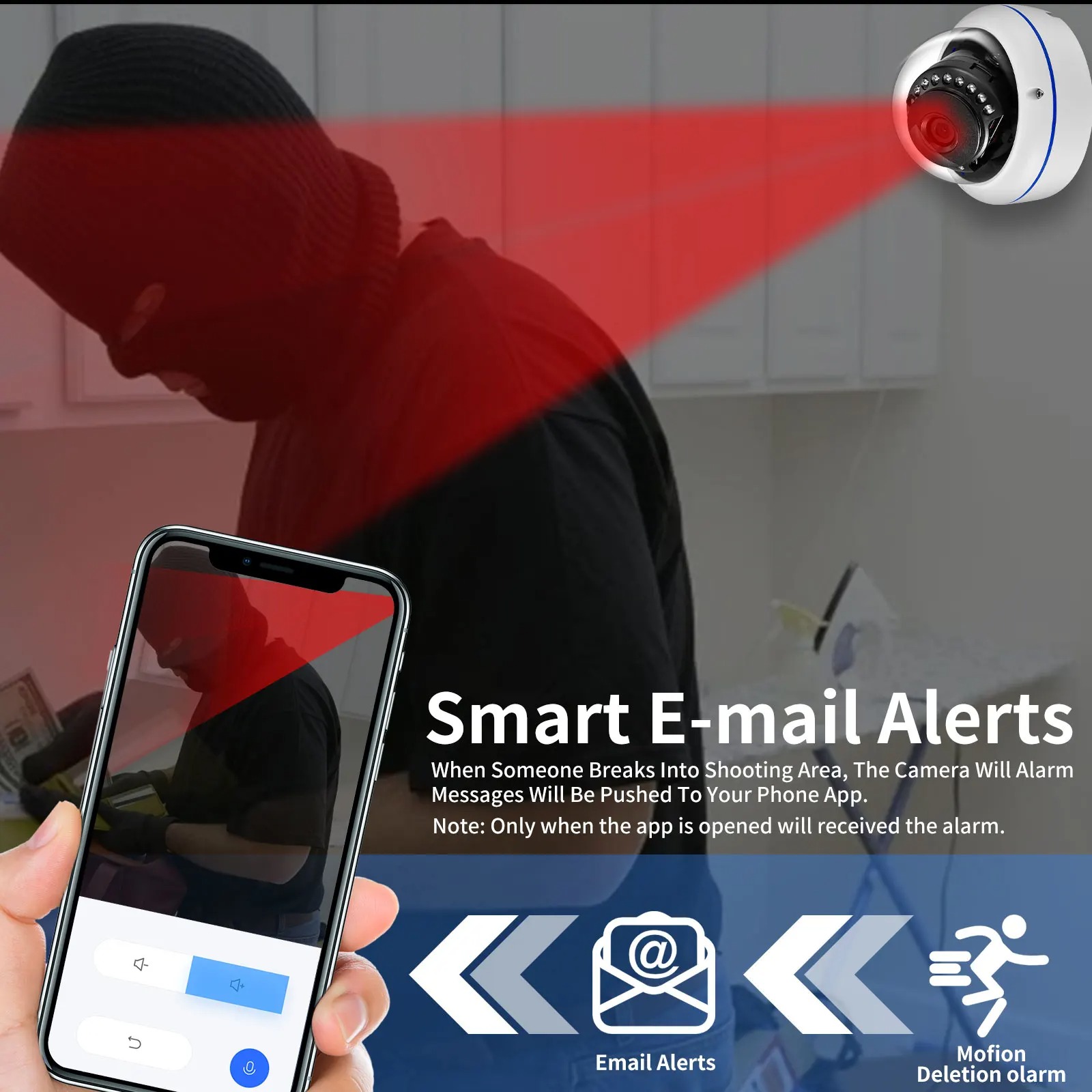 Built-in microphone records what people say,make it authentic with sound video recordingMotion Detection & Alarm Alert
