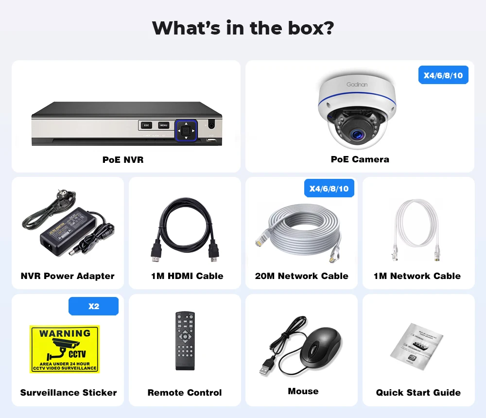 Gadinan 8MP 4K PoE NVR security camera system supports simultaneous live feed and 24/7 recording for all cameras. Real 10000% FULL 4K 8MP Security System