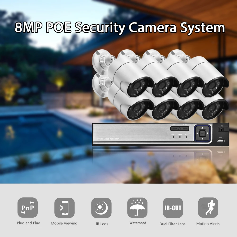 With a high resolution of 8megapixels (3840 x 2160), this 8MP HD IP surveillance camera is able to capture videos in 3840p HD quality. It is a huge advancement compared to 5MP or 1080P. you never miss a single detail of your loved ones. which enables you to see all objects very clearly.