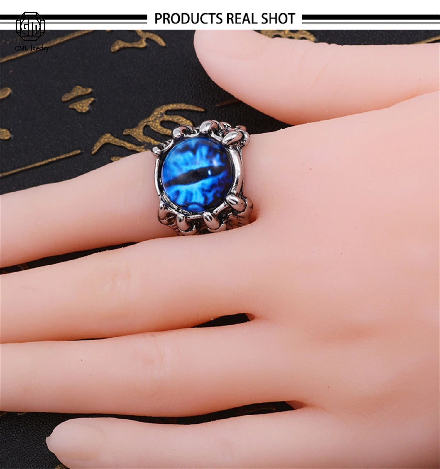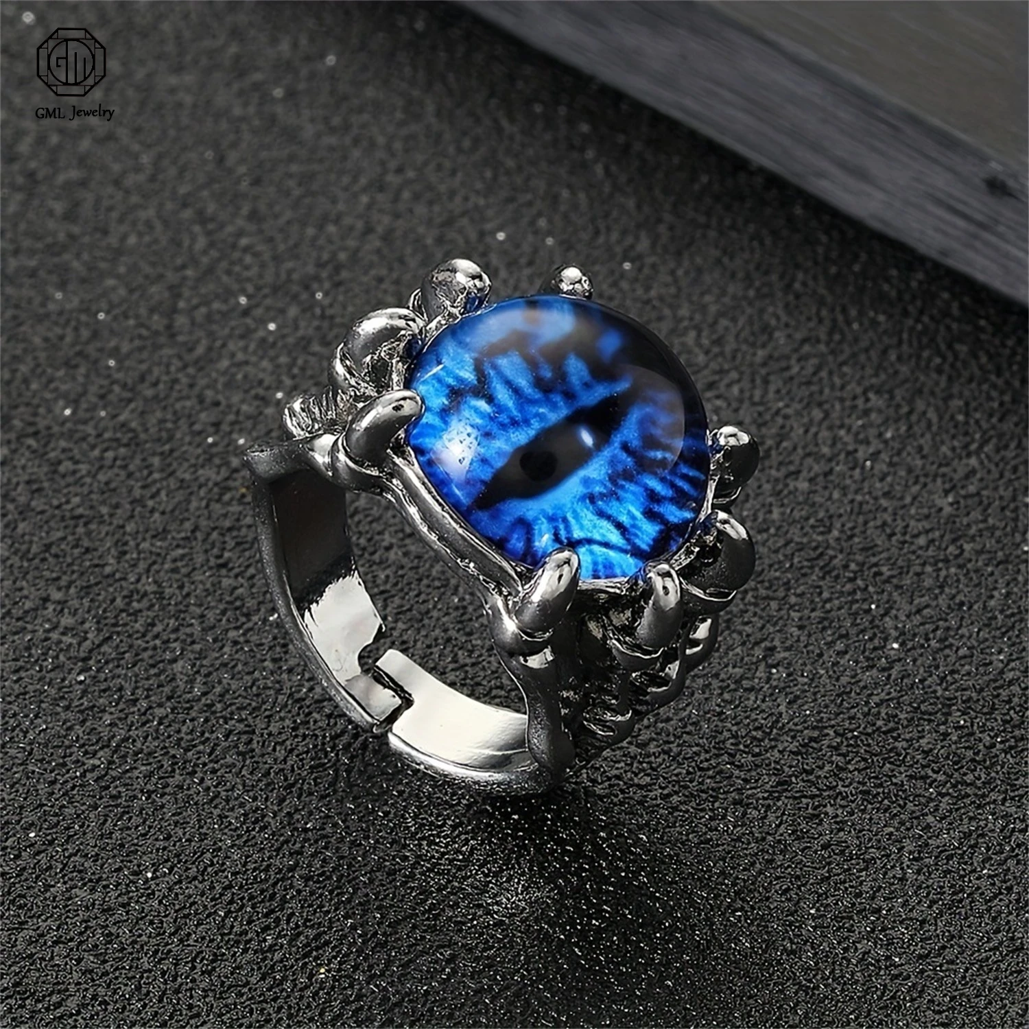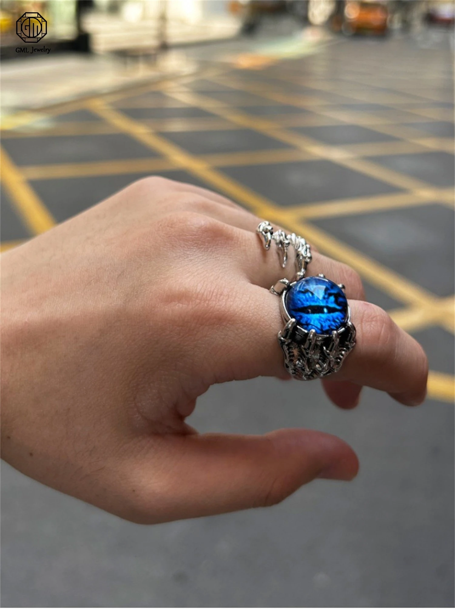 Gothic Dragon Claw Eagle Talon Ring Adjustable Open Band Evil Eye Blue Crystal Gothic Punk Jewelry for Men Women Unisex Vintage Style
