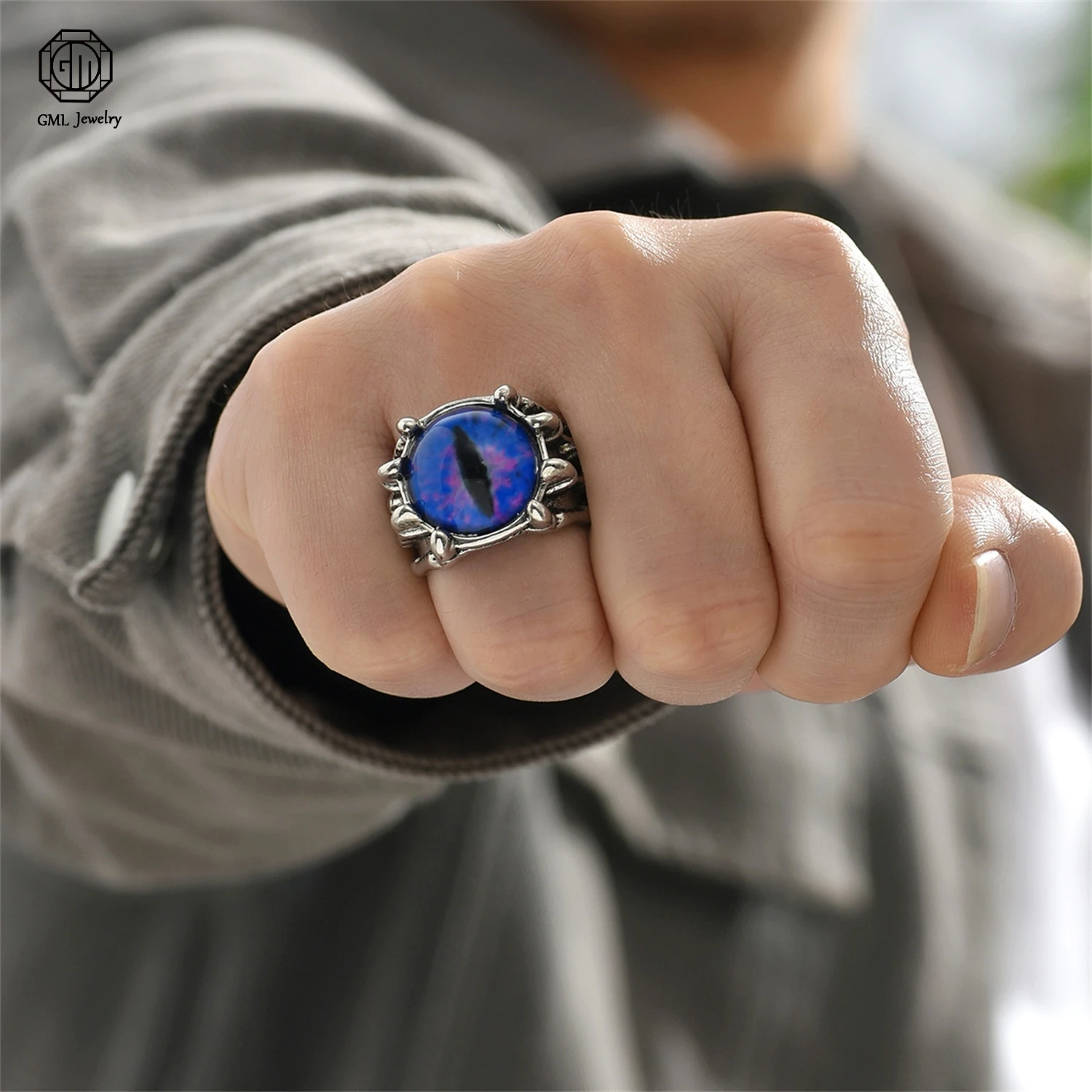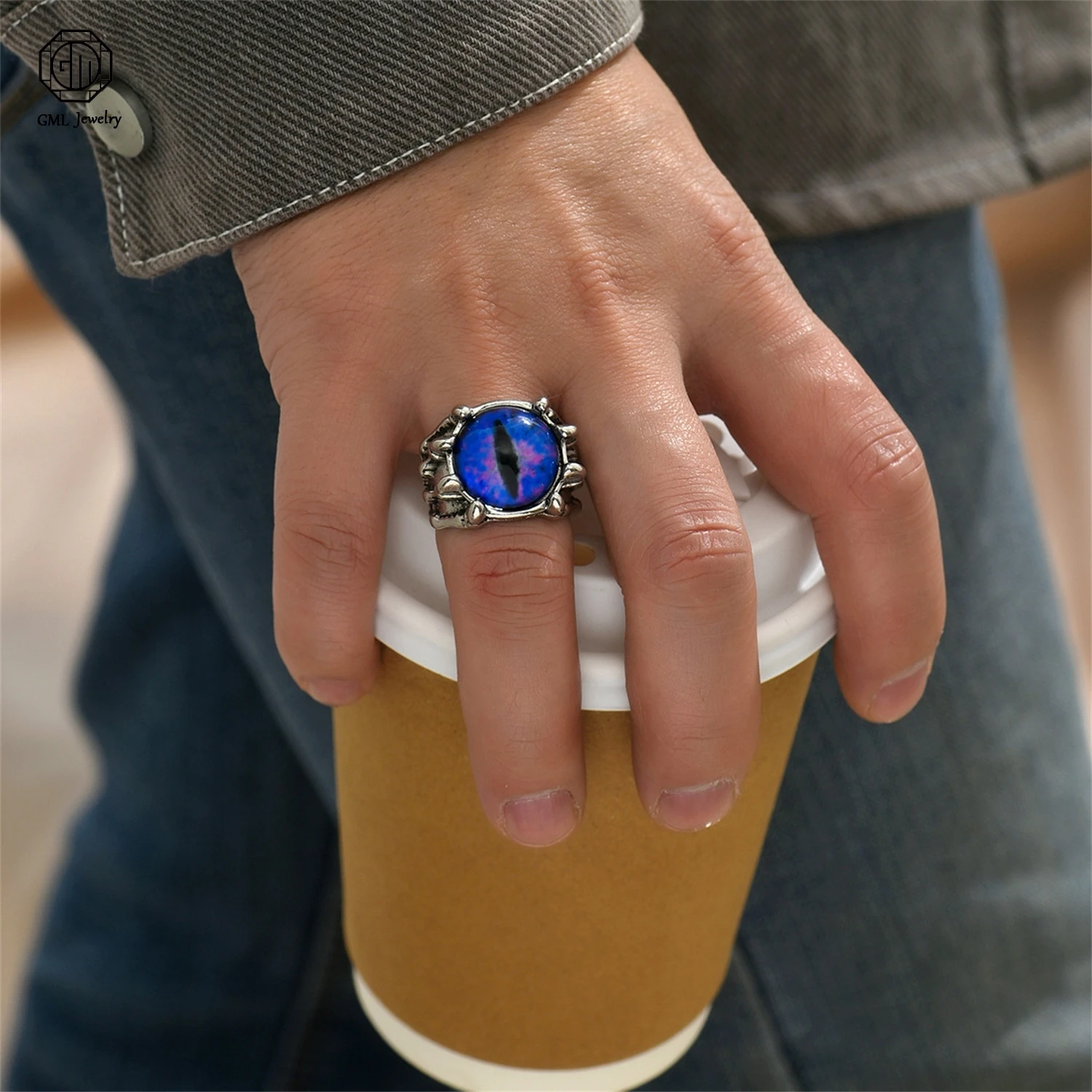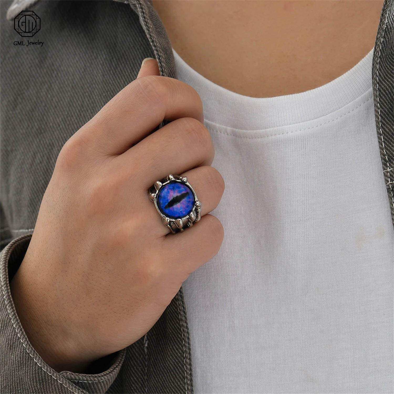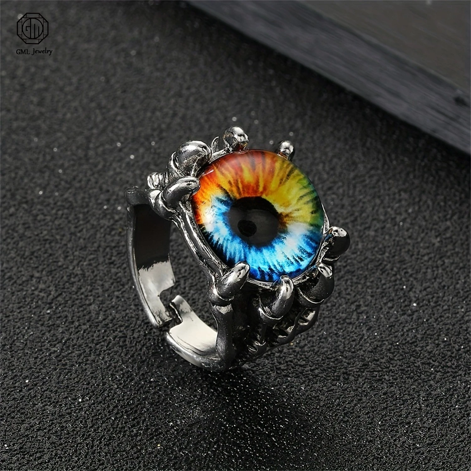 Gothic Dragon Claw Eagle Talon Ring Adjustable Open Band Evil Eye Blue Crystal Gothic Punk Jewelry for Men Women Unisex Vintage Style