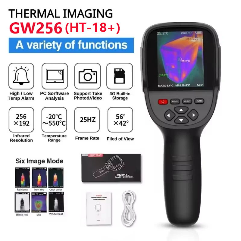 GW256 is a handheld thermal camera that offers a simple, professional, and efficient solution for a wide range of applications. Whether you need to perform electrical diagnosis, home maintenance, mechanical equipment maintenance, construction inspection, or even tasks related to agriculture, forestry, and animal husbandry, the GW256 is designed to meet your needs.
