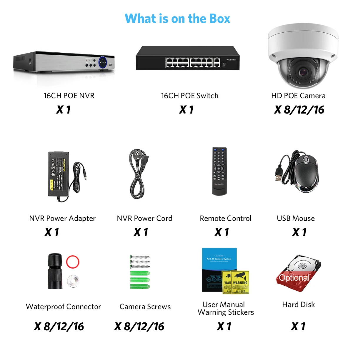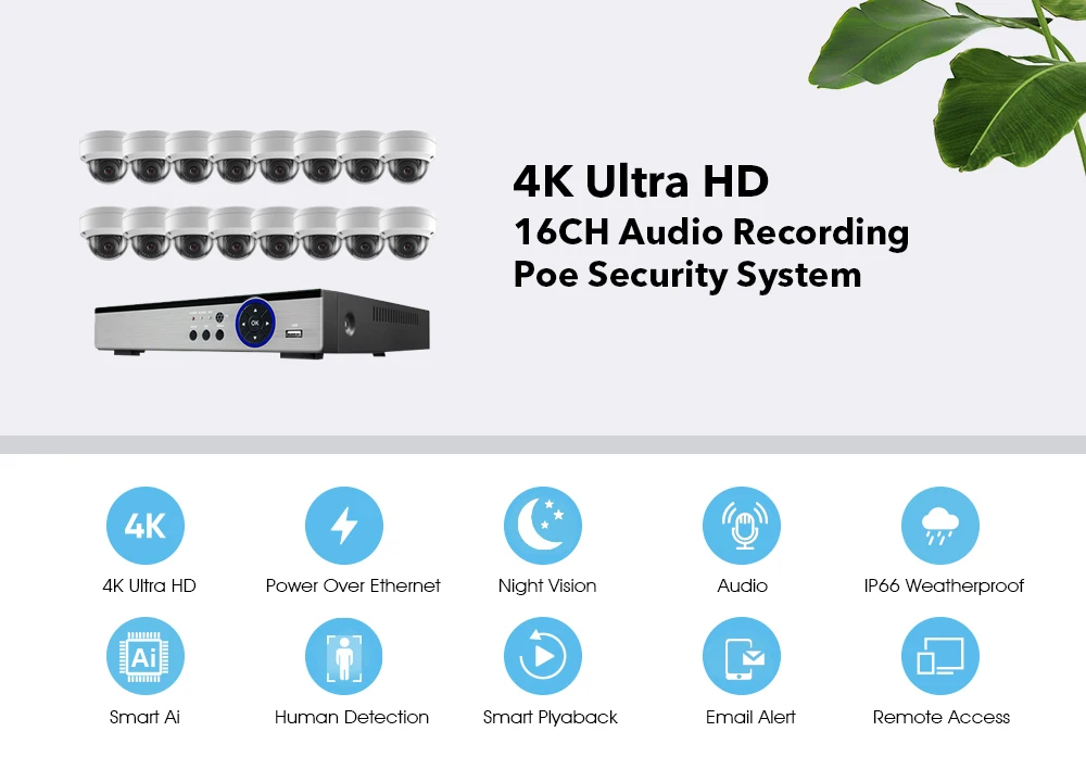 8MP POE IP Camera Paired 4K POE NVR ,with resolution of 3840×2160, delivery higher quality image. better in details.