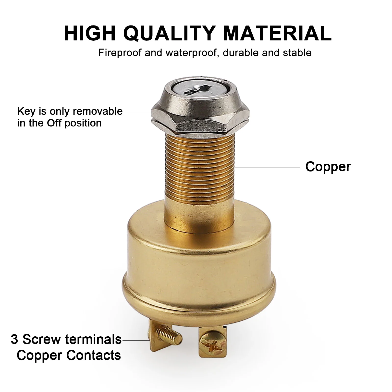 The Ignition Switch is made of brass material, the use of exquisite technology and quality testing, so that it has good performance at the same time the structure is stronger, better durability, longer service life