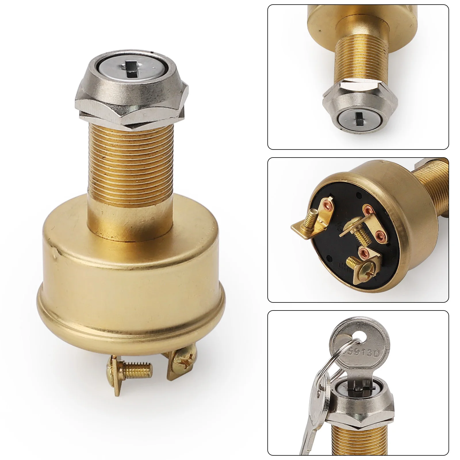 Brass Marine Boat Ignition Starter Switch 3 Terminals 3 Positions Off-On-Start Heavy Duty MP39060-1 For Car RV Truck Van Boat