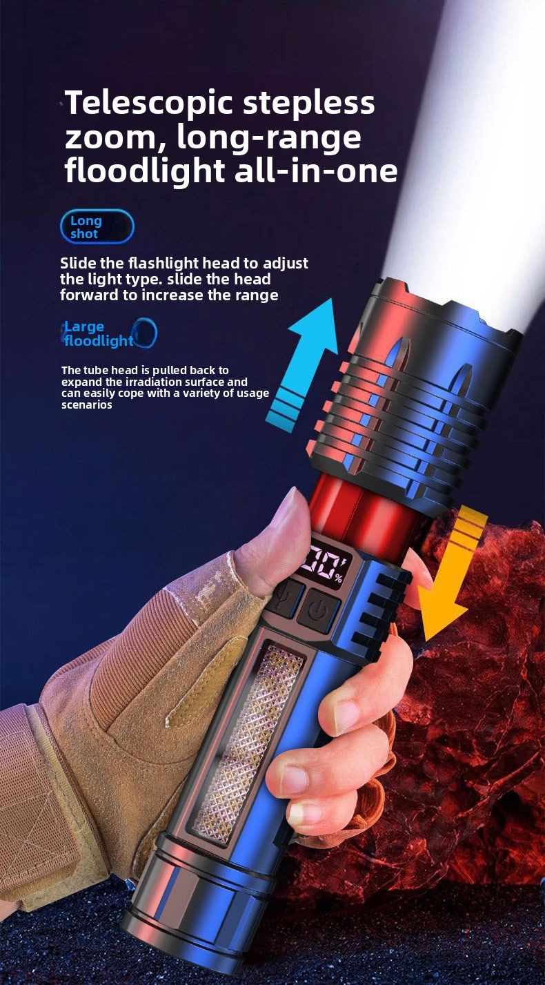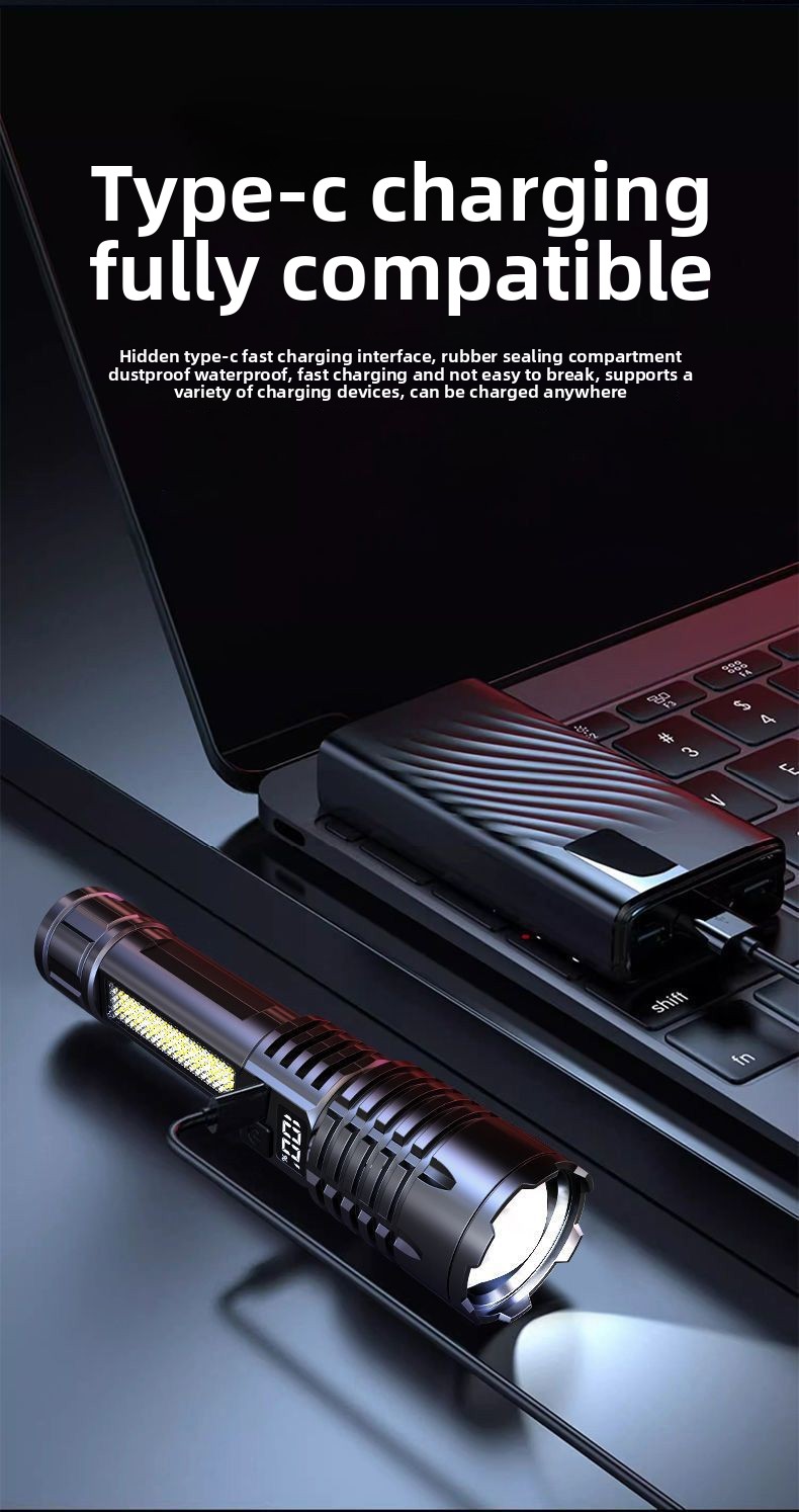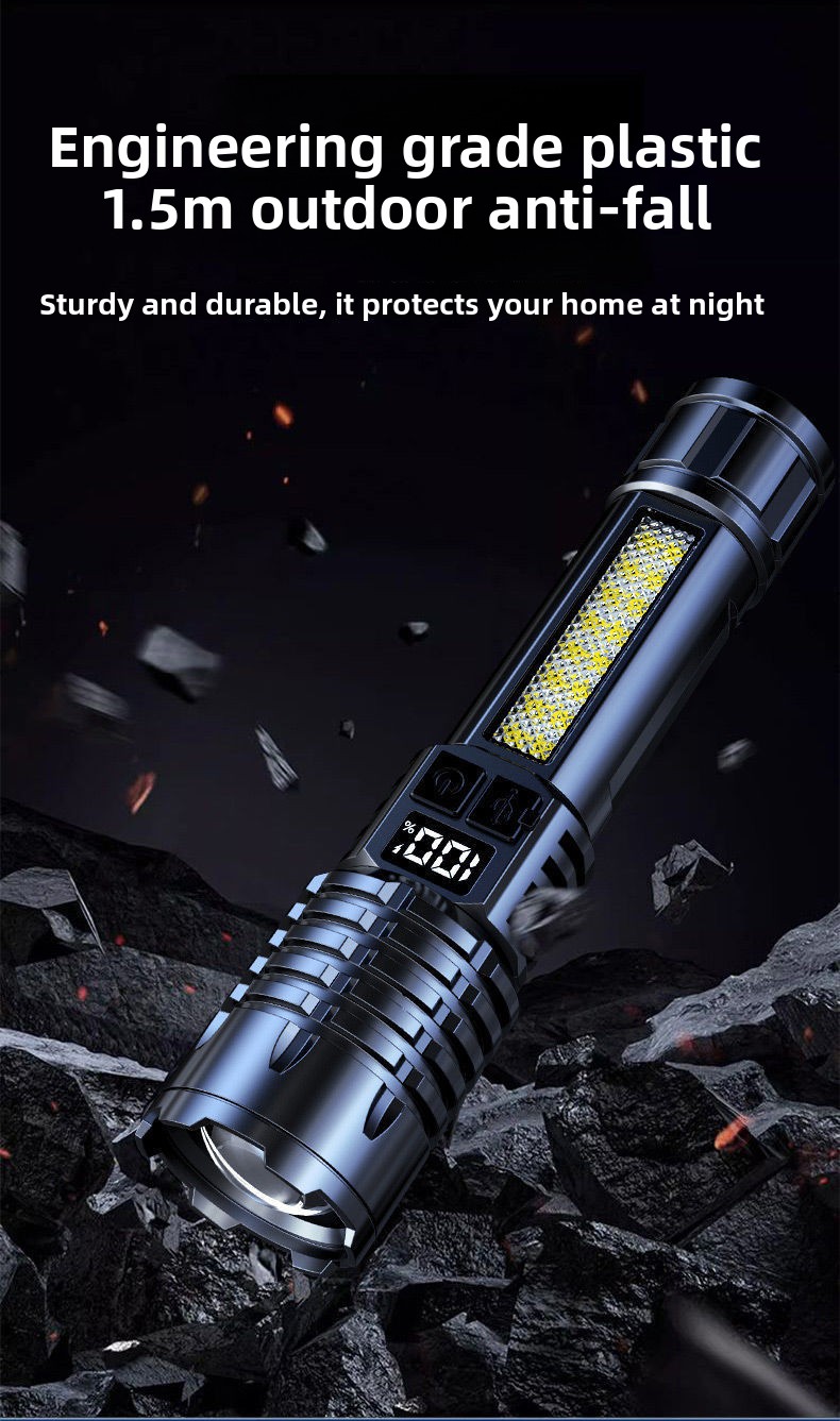 • Rechargeable :The flashlight is rechargeable, offering convenience and longevity since it doesn't require constant battery replacements.