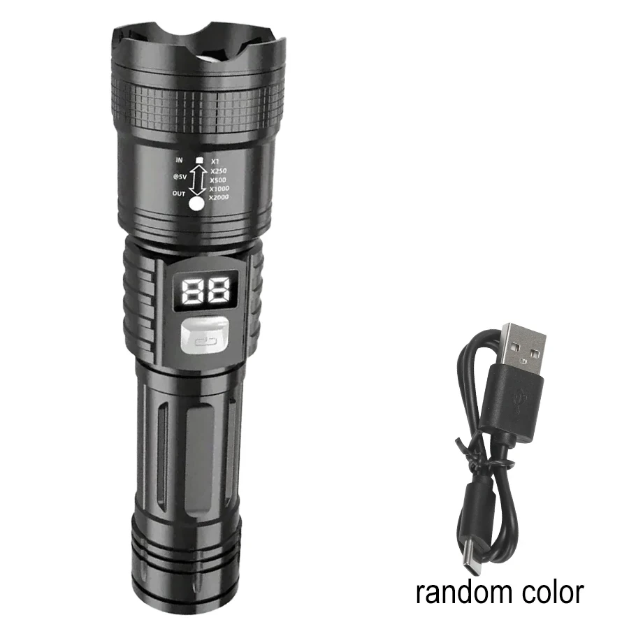 High Strong Power LED Flashlight Tactical Torch USB Rechargeable Zoom Emergency Lights For Outdoor Fishing Work Lighting Lamp