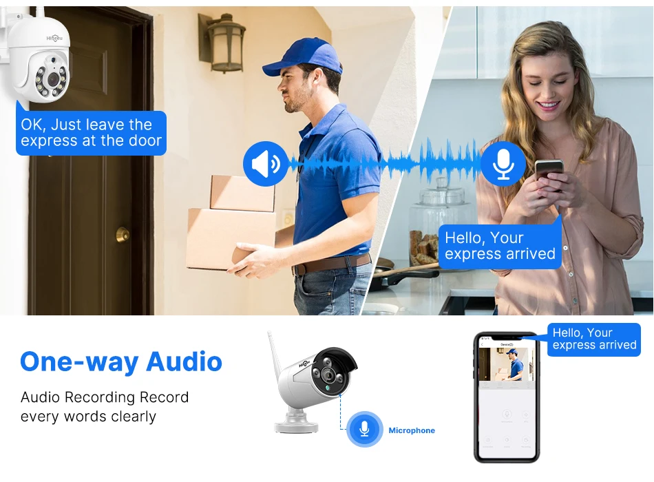 If the camera detects humanoid movements, the system will send out an alarm (Show message to APP, Send email, system buzzer). You can know that someone is approaching your home anytime, anywhere.