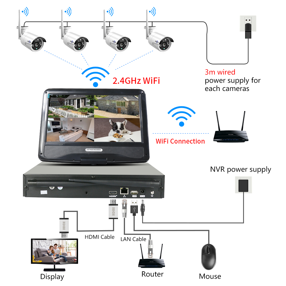 LCD wireless NVR can save money and save space ,due to dont need to seperate monitor /display /TV,directly power LCD NVR,they can work well .it is more easy to connect .but if you still want to use your own display ,you also can use HDMI cable to connect it .