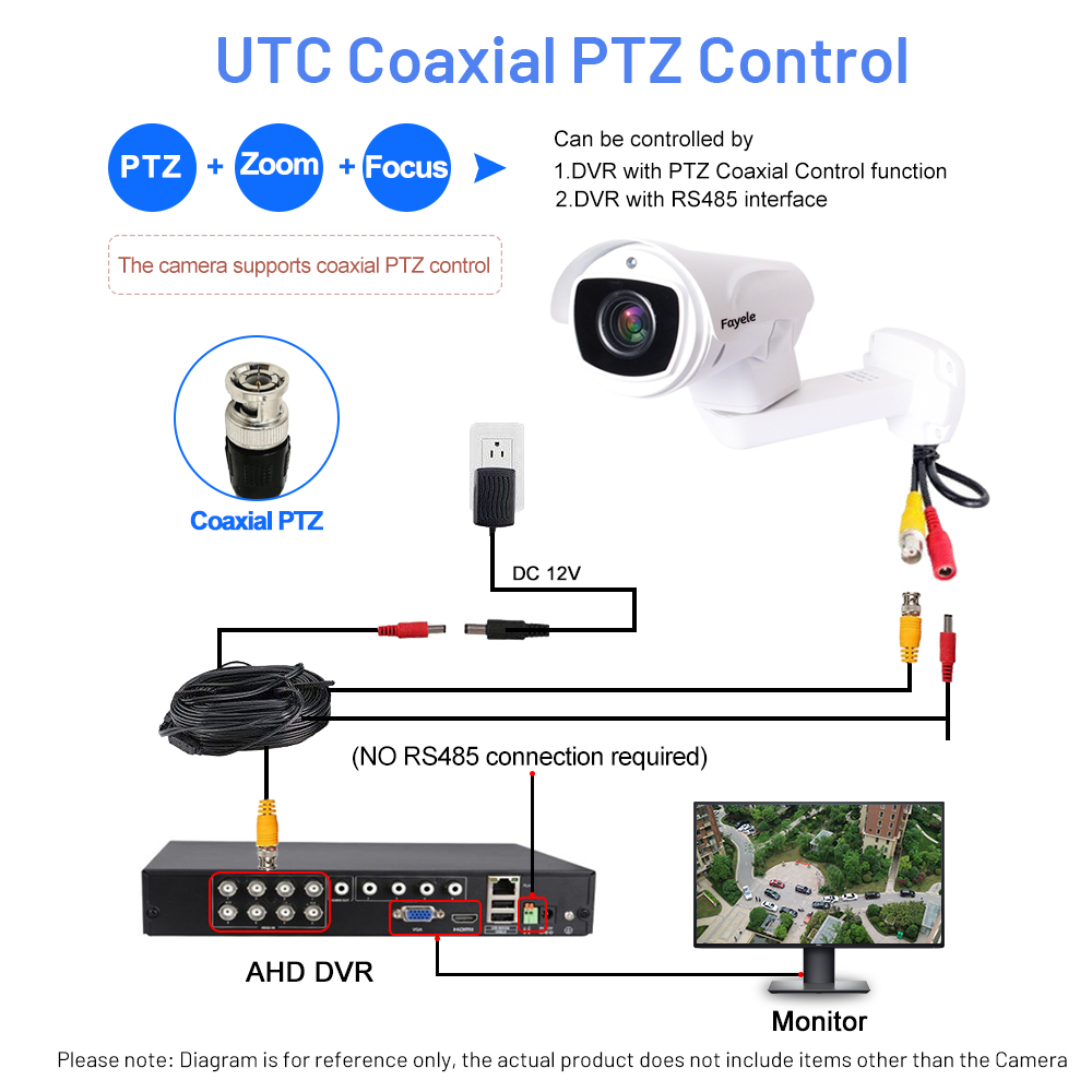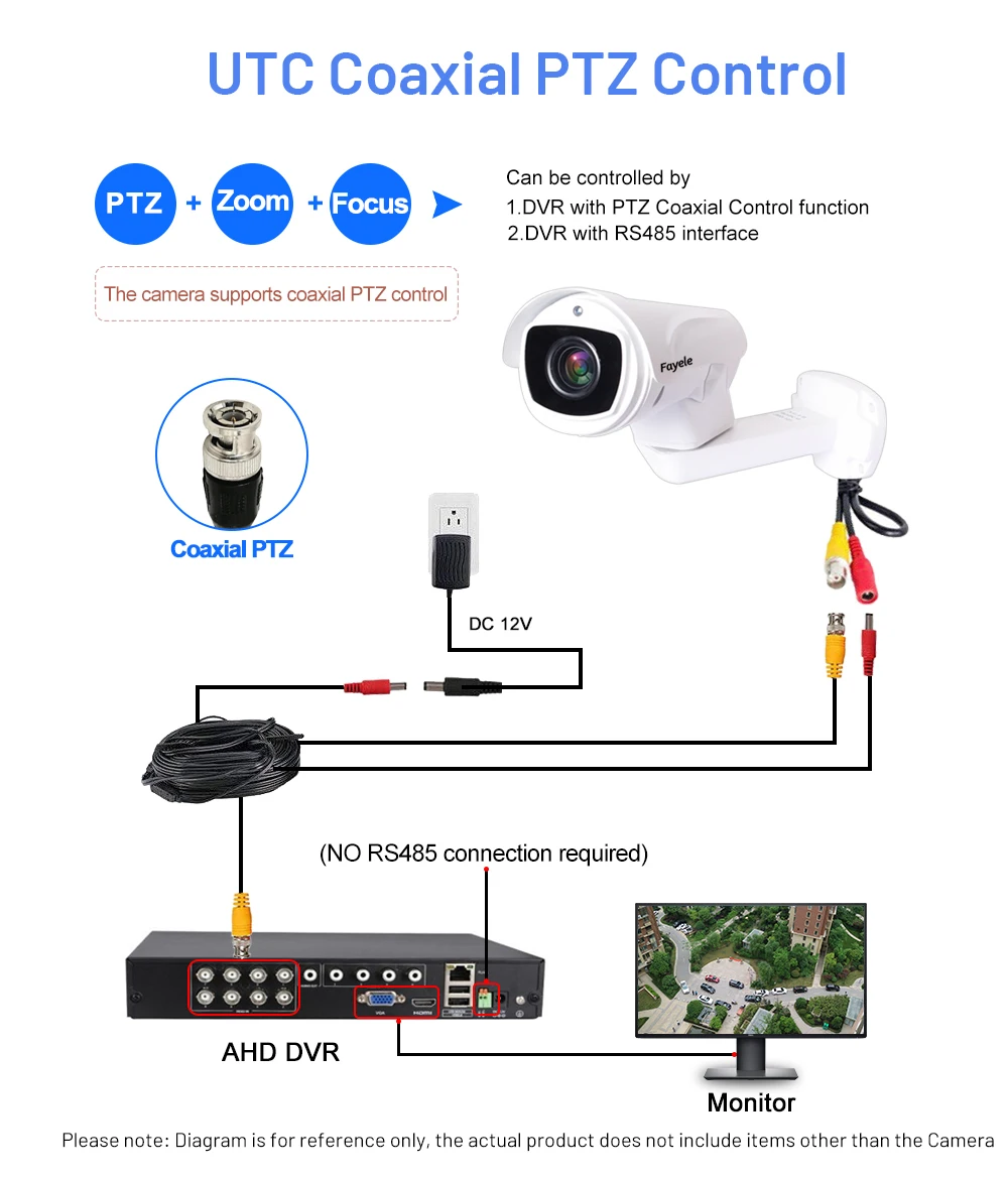 With UTC coaxial PTZ control, there's no need to wire up the RS485 wires. You can buy our AHD DVR for UTC coaxial PTZ control.