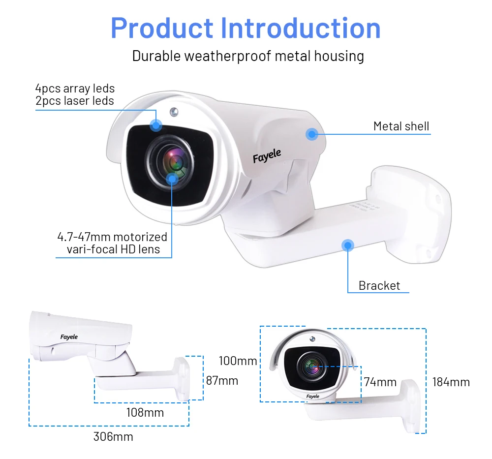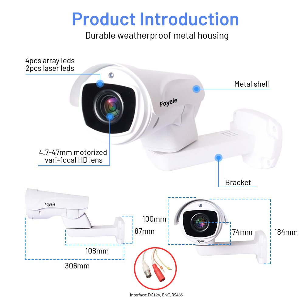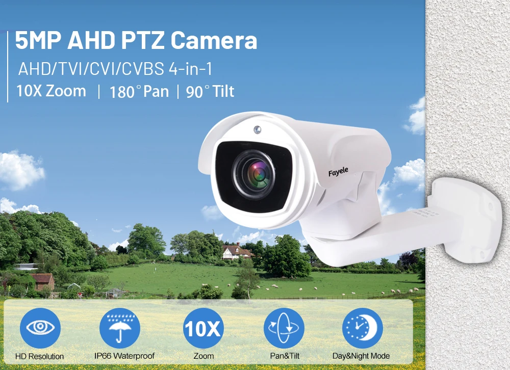 Home Security AHD 1080P PTZ Camera CVI TVI CVBS 4IN1 Analog 2MP 5MP Pan Tilt Bullet Camera 10X Optical Zoom 4X IP66 Waterproof