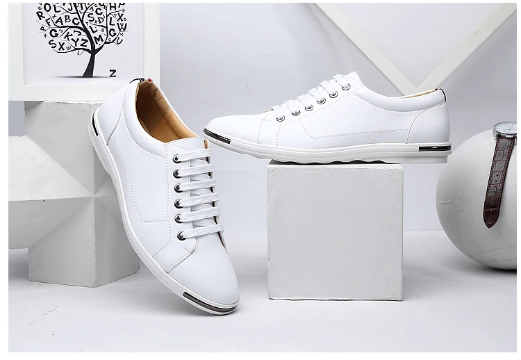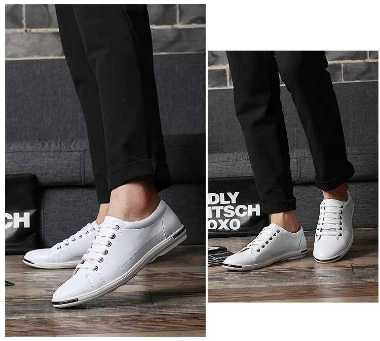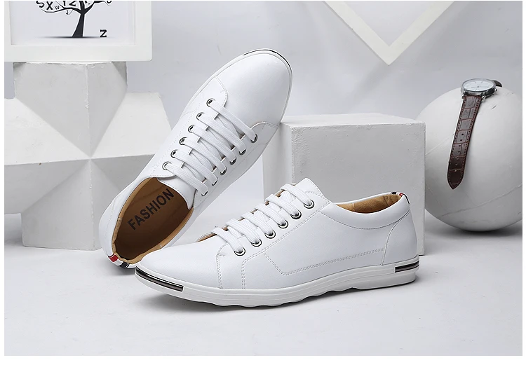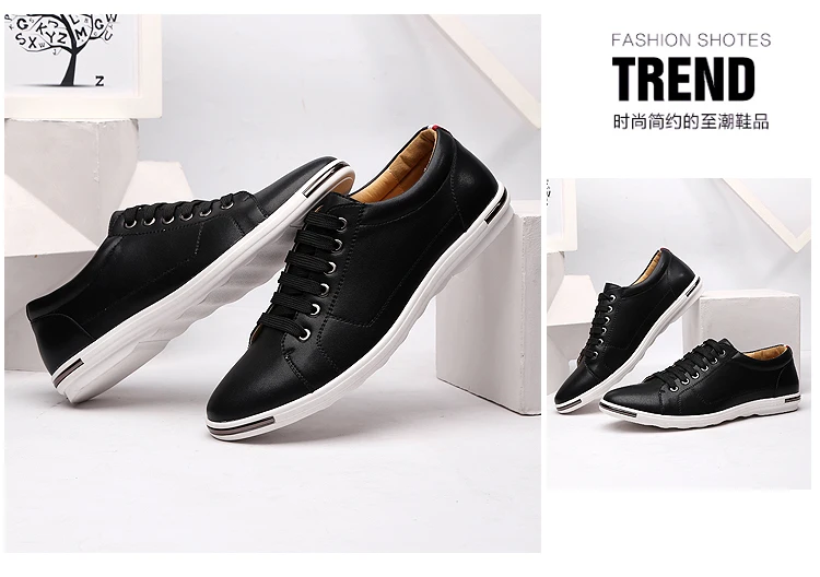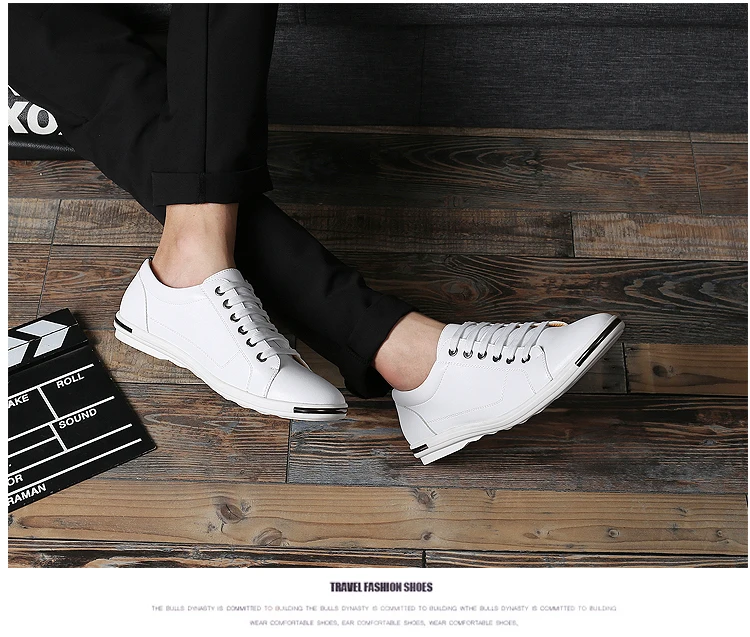 Hot Men’s Casual Shoes Leather Sneakers Fashion White Black Male Vulcanized Shoes Non-slip Soft Men Shoes Lightweight Flat Shoe