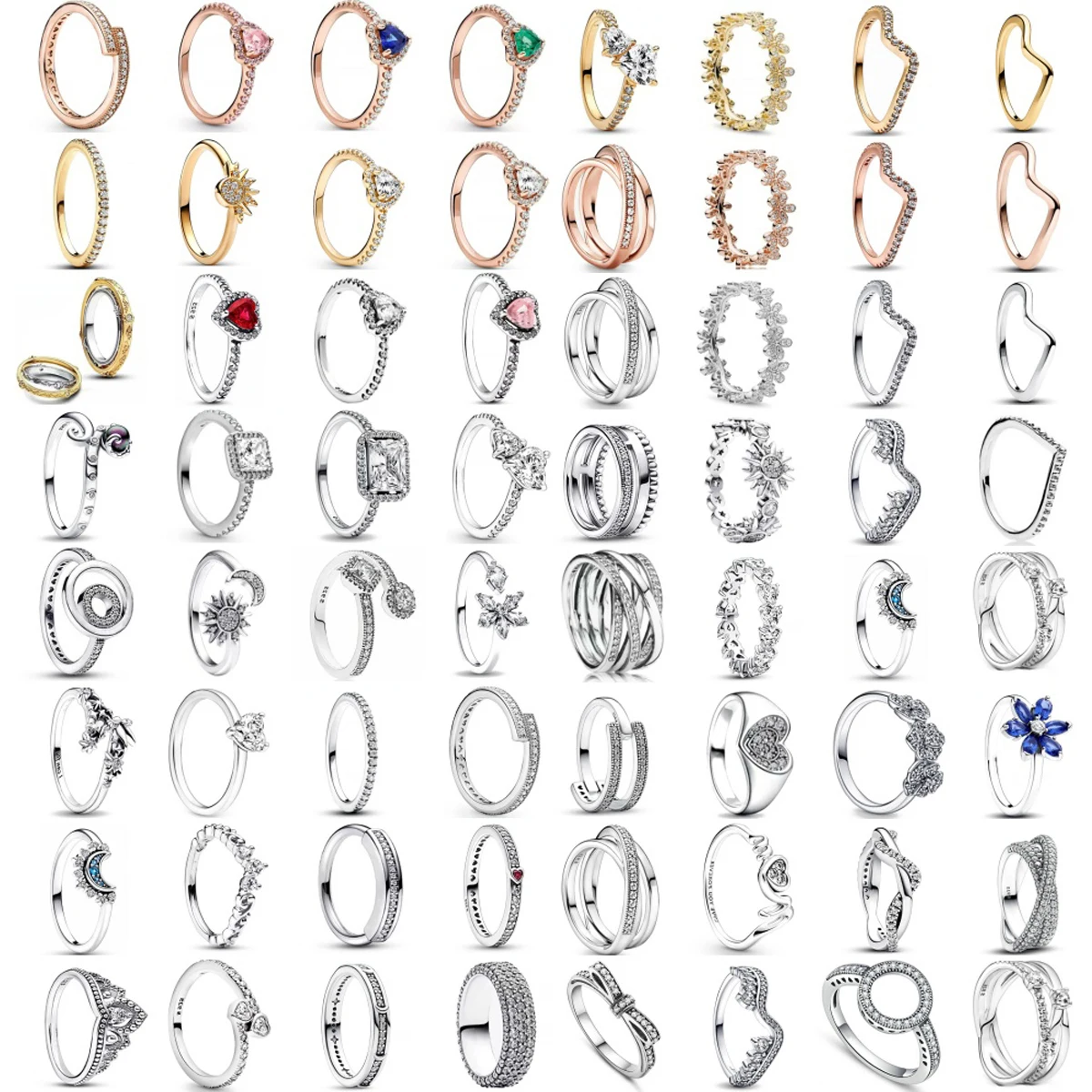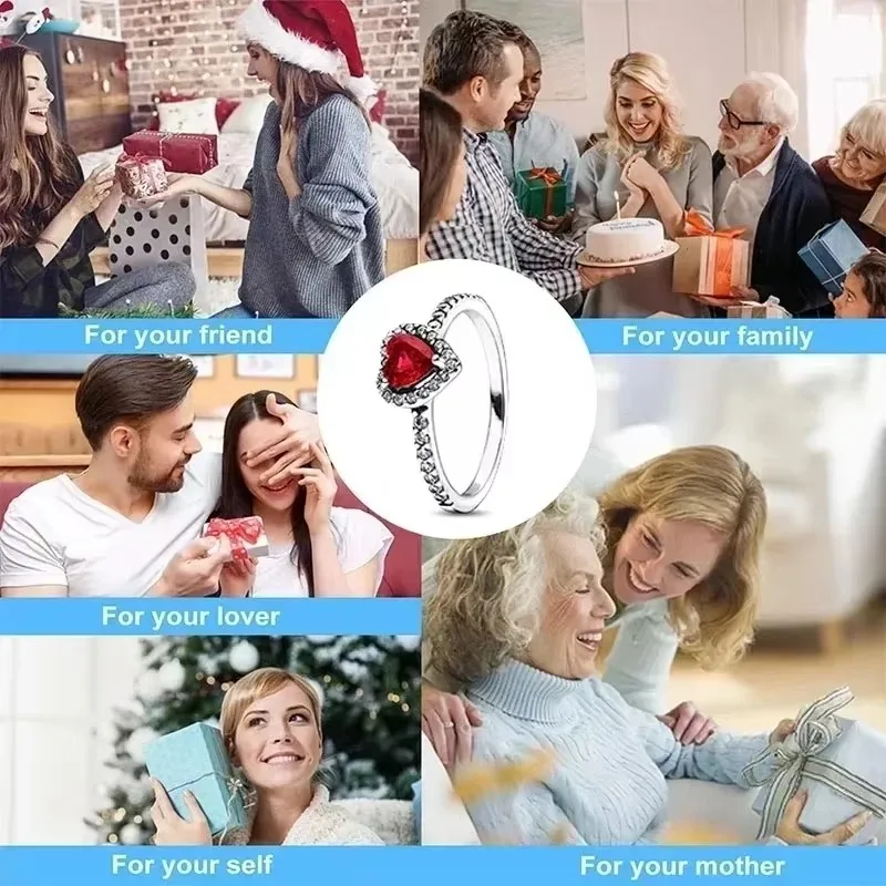 Hot Sale 925 Sterling Silver Red Pink Blue Green Heart Stone Snowflake Daisy Ring Trinkets Rings Wedding Fashion Jewelry Women